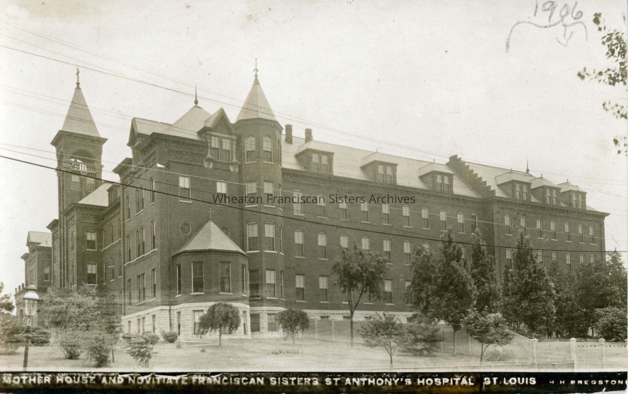 Postcard featuring St. Anthony’s Hospital, Novitiate and Motherhouse located at 3520 Chippewa Street in St. Louis, Missouri.
