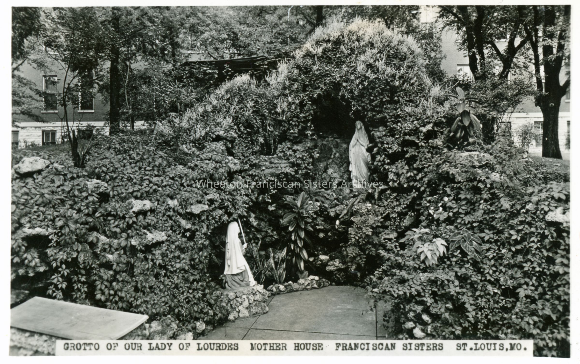 Postcard of the grotto near St. Anthony’s Hospital located at 3520 Chippewa Street in St. Louis, Missouri.