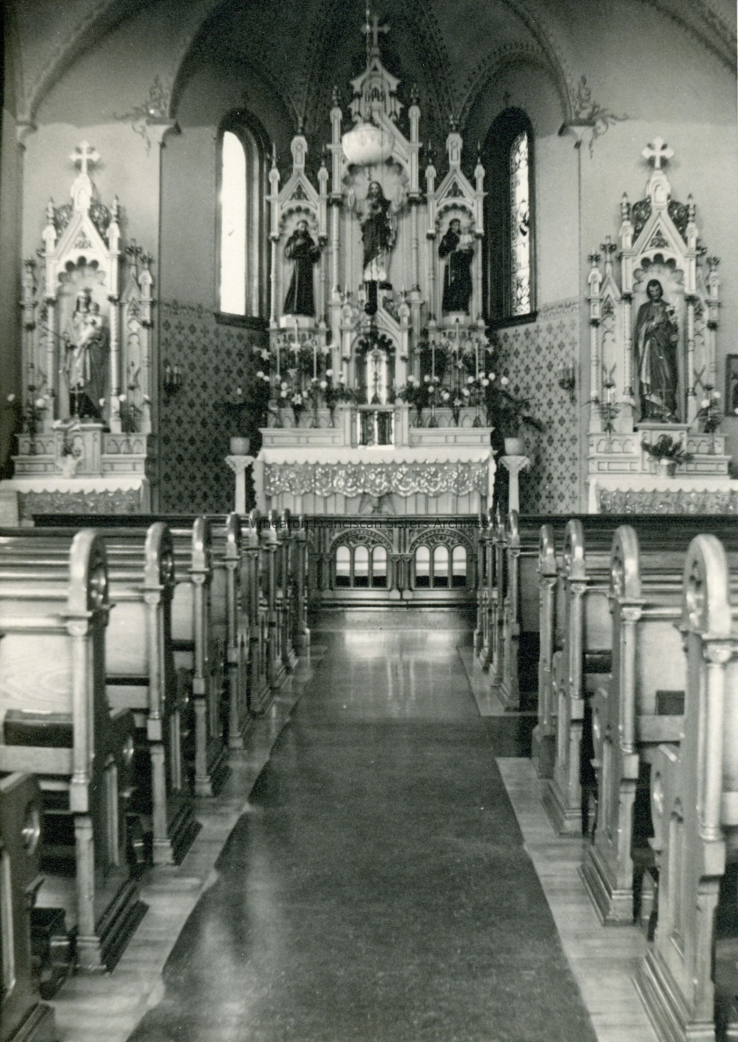 The chapel in St. Rose Residence located at 952 10th Street in Denver, Colorado. This ministry served as a home for young working women. At different times, the location was known as St. Clara's Convent, St. Rose's Convent, St. Rosa's Home and was once the site of St. Clara's Orphanage.