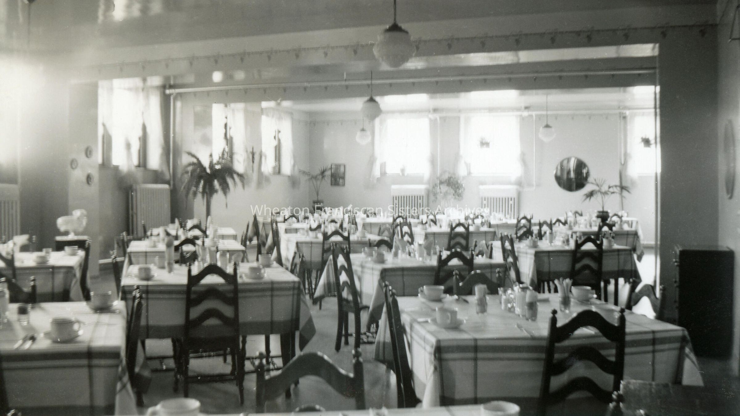 St. Rose Residence located at 952 10th Street in Denver, Colorado. A home for young working women, this image features the dining room. At different times, this location was known as St. Clara's Convent, St. Rose's Convent, St. Rosa's Home and was once the site of St. Clara's Orphanage.