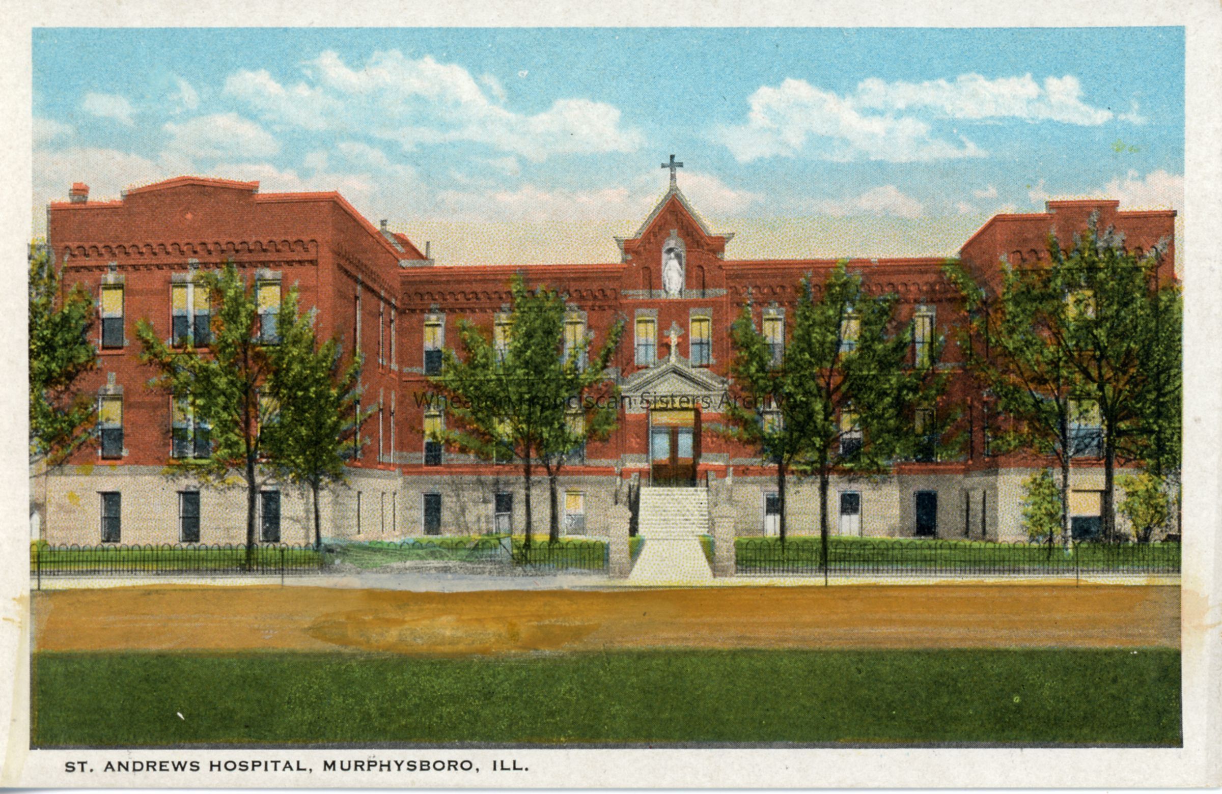 In late 1897, Father Kasper Schauerte, Pastor of St. Andrew's Parish in Murphysboro, contacted the Franciscan Sisters and requested assistance with a new hospital. The following February, St. Andrew's was completed and cared for one hundred sixty two patients during its first year. The Sisters remained at the hospital until 1956 when the ministry was transferred to the Adorers of the Blood of Christ. This building was later demolished after a new facility, known as St. Joseph's, was constructed in 1960.Context