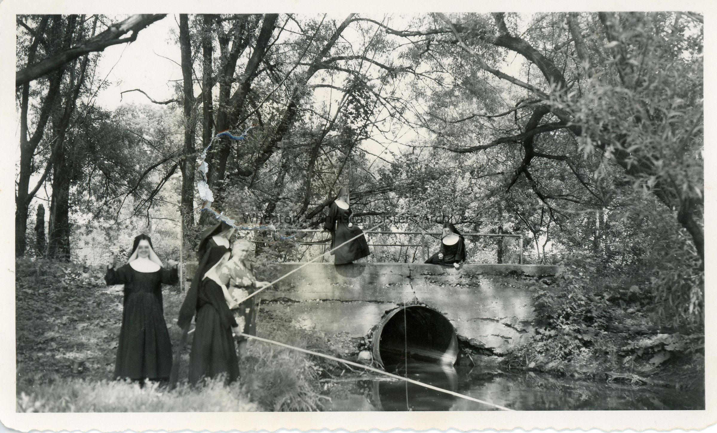 Sisters in Wauconda, Illinois. They are pictured fishing in a small creek.
