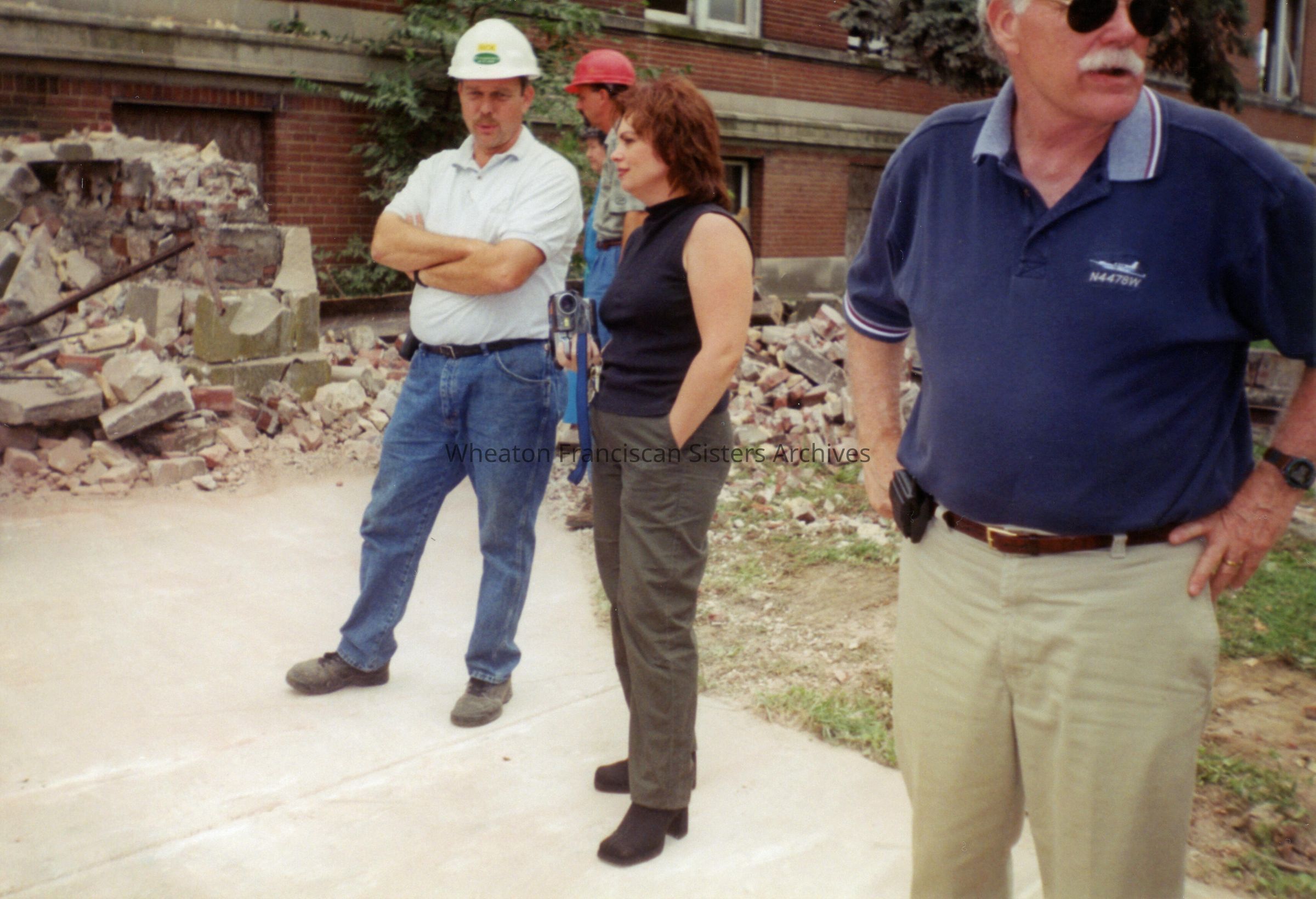 Demolition of St. Francis Hospital located at 825 Good Hope Street in Cape Girardeau, Missouri. This image was taken during the removal of the cornerstone time capsule. Opened in 1914, the hospital replaced an older structure located at Sprigg and Williams Streets. St. Francis remained here until 1976 and the building was demolished in 2000. Affordable housing now occupies the site.