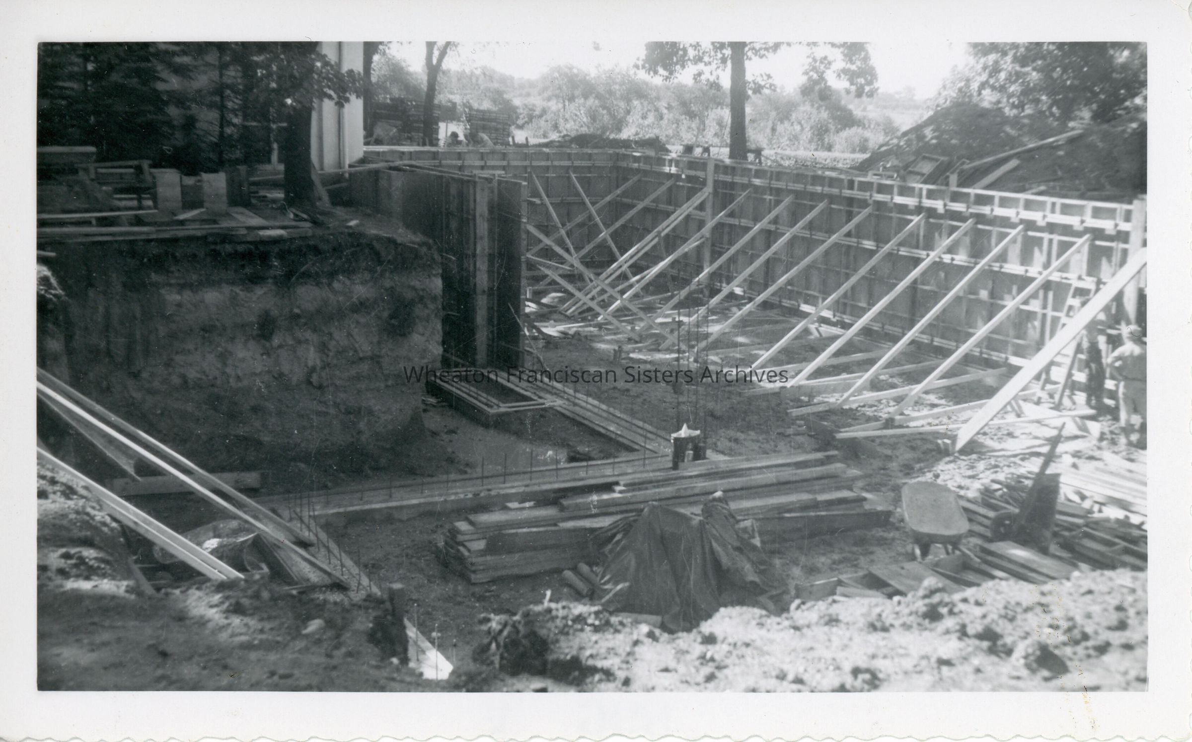 In 1947, the Franciscan Sisters acquired a large tract of land in Wheaton which included this structure. From approximately 1947 - 1955, it was used by the Sisters as a novitiate and saw extensive renovations in 1949. Beginning around 1956, it was home to the Our Lady of the Angels Aspirancy, and in the following decades, saw use as a coffee house, daycare, offices and more. Located in the southeast corner of the campus, the home and subsequent addition were demolished in 2009 after their condition had deteriorated.Context