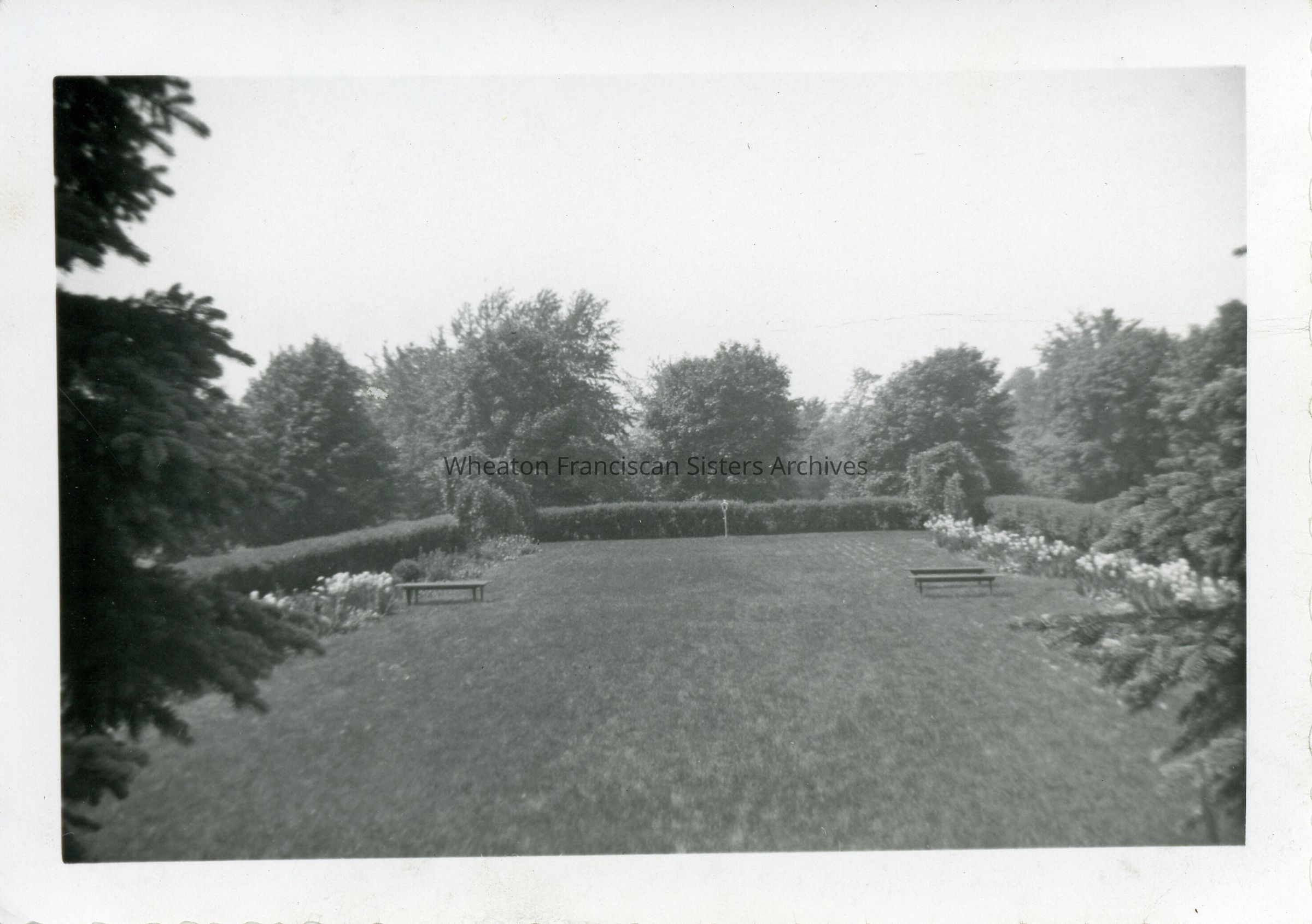 A large formal garden located behind Maura Hall in Wheaton, Illinois. Completed around 1930, the home was a wedding gift to Helen Hurley Ryan, daughter of Edward N. Hurley Sr.