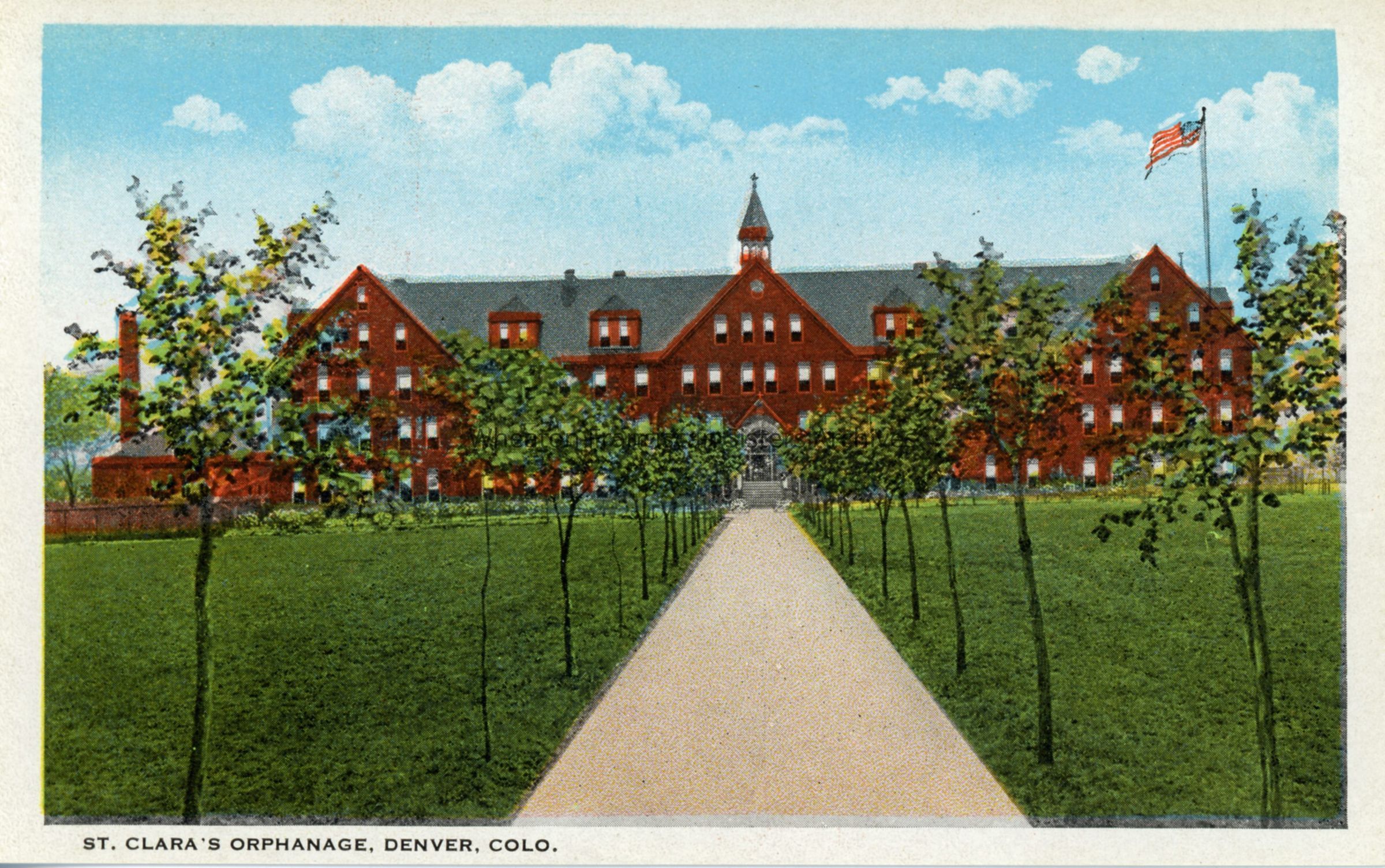 Postcard of St. Clara's Orphanage near West 29th Avenue and Osceola Street in Denver, Colorado.