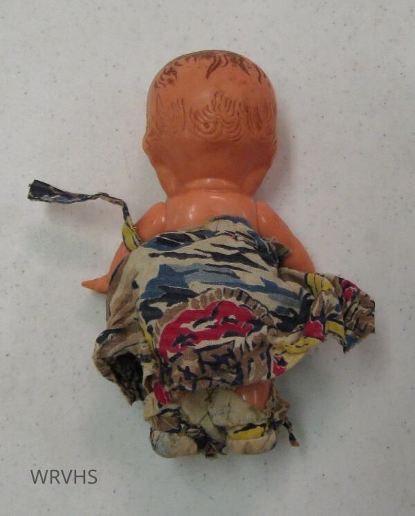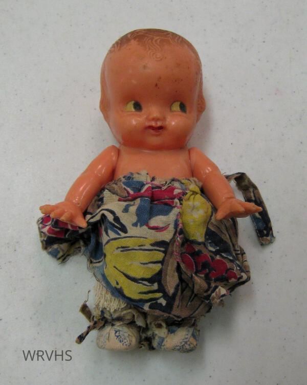 1 vintage celluloid Kewpie. Made by Irwin Toy Company. Kewpie is wearing a homemade skirt, underwear, and shoes.Relationships