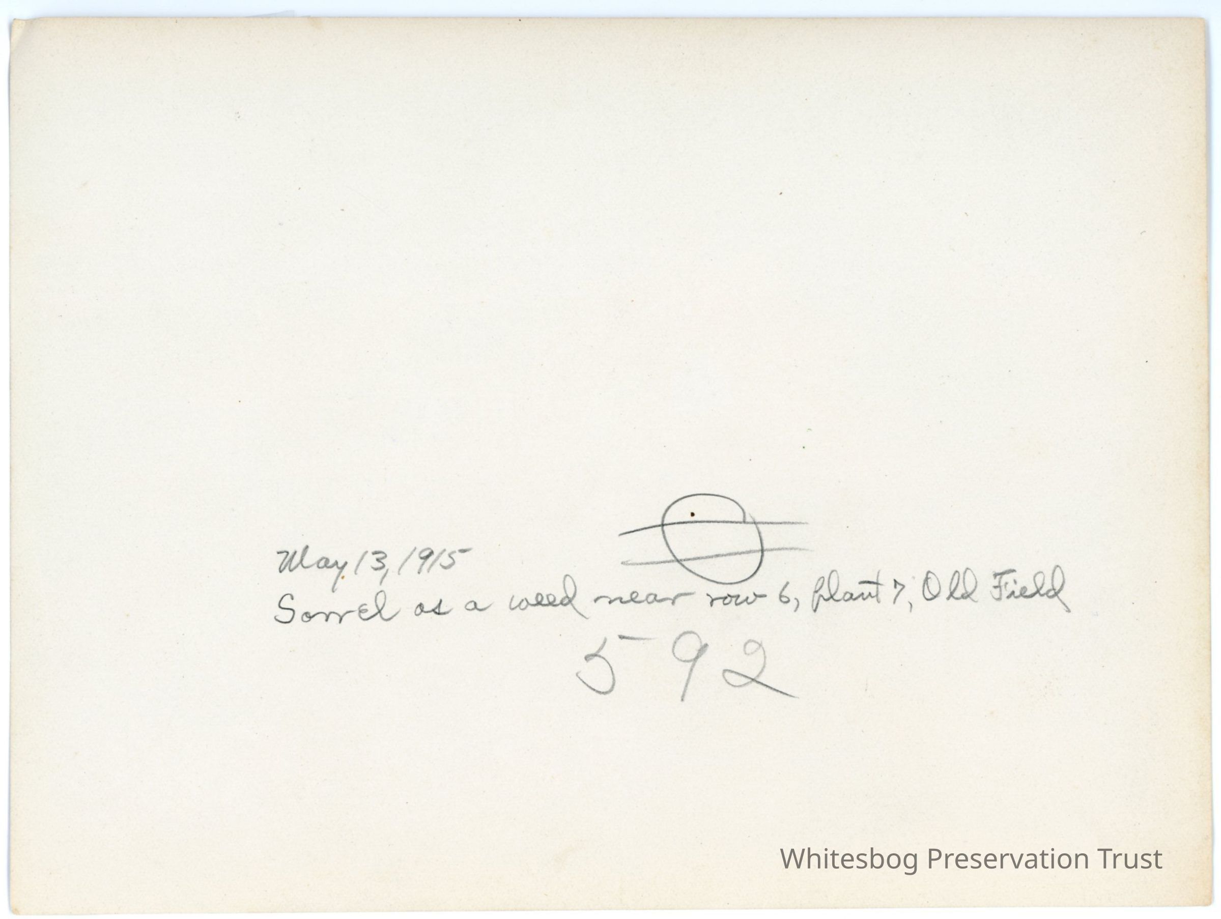 5/13/1915 "Sorrel as a weed near row 6, plant 7, Old Field"