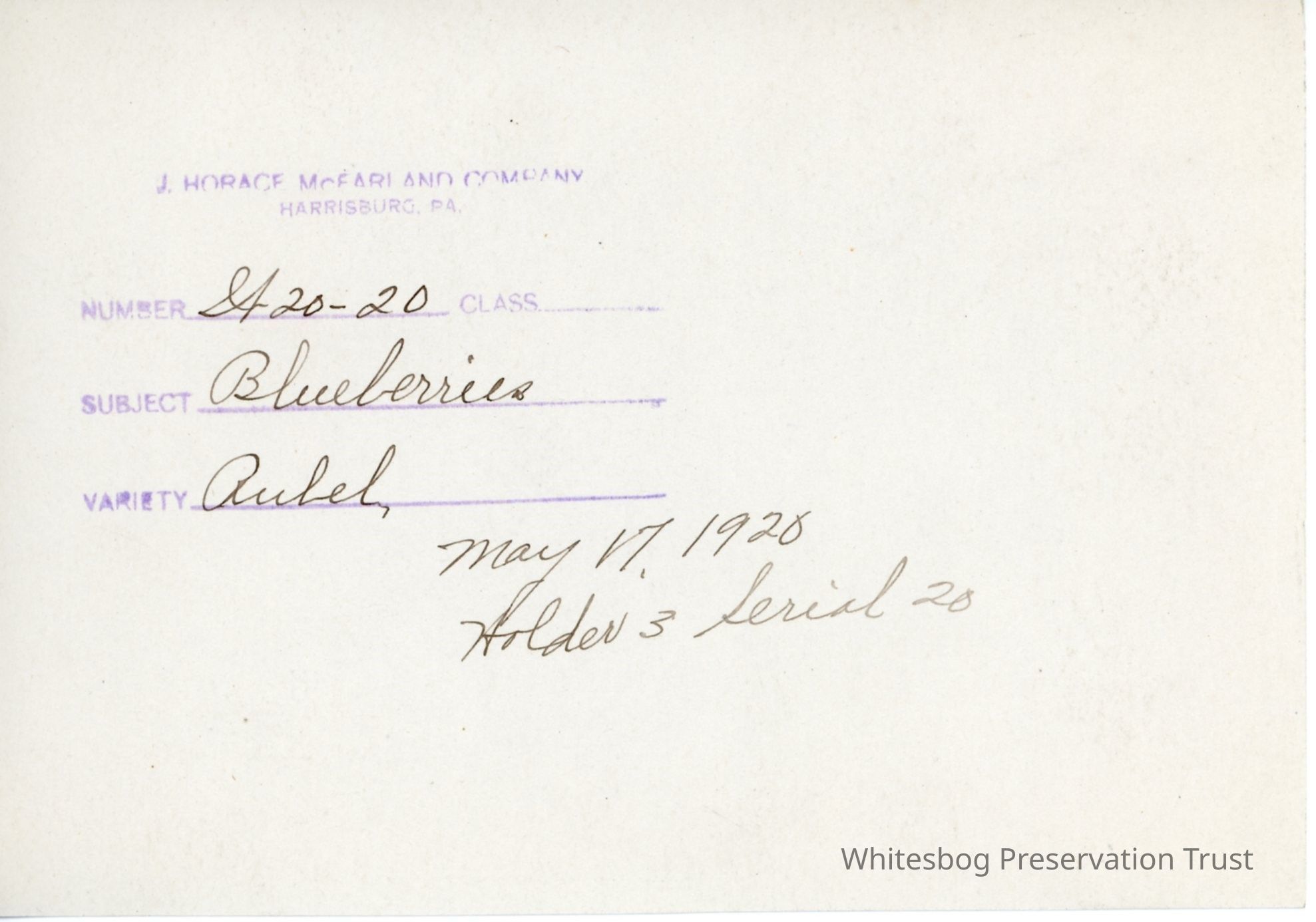 5/17/1920 "Rubel Blueberry flowers"