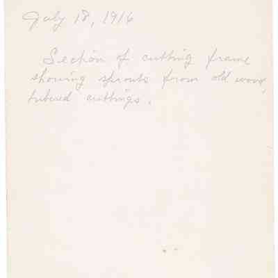 7/18/1916 "Section of cutting frame showing sprouts from old wood, tubered cuttings ."