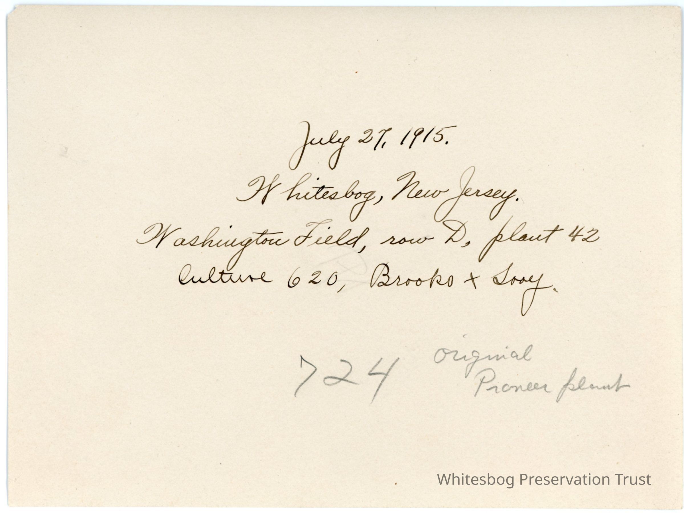 7/27/1915 "Brooks x Sooy. Original Premier plant"