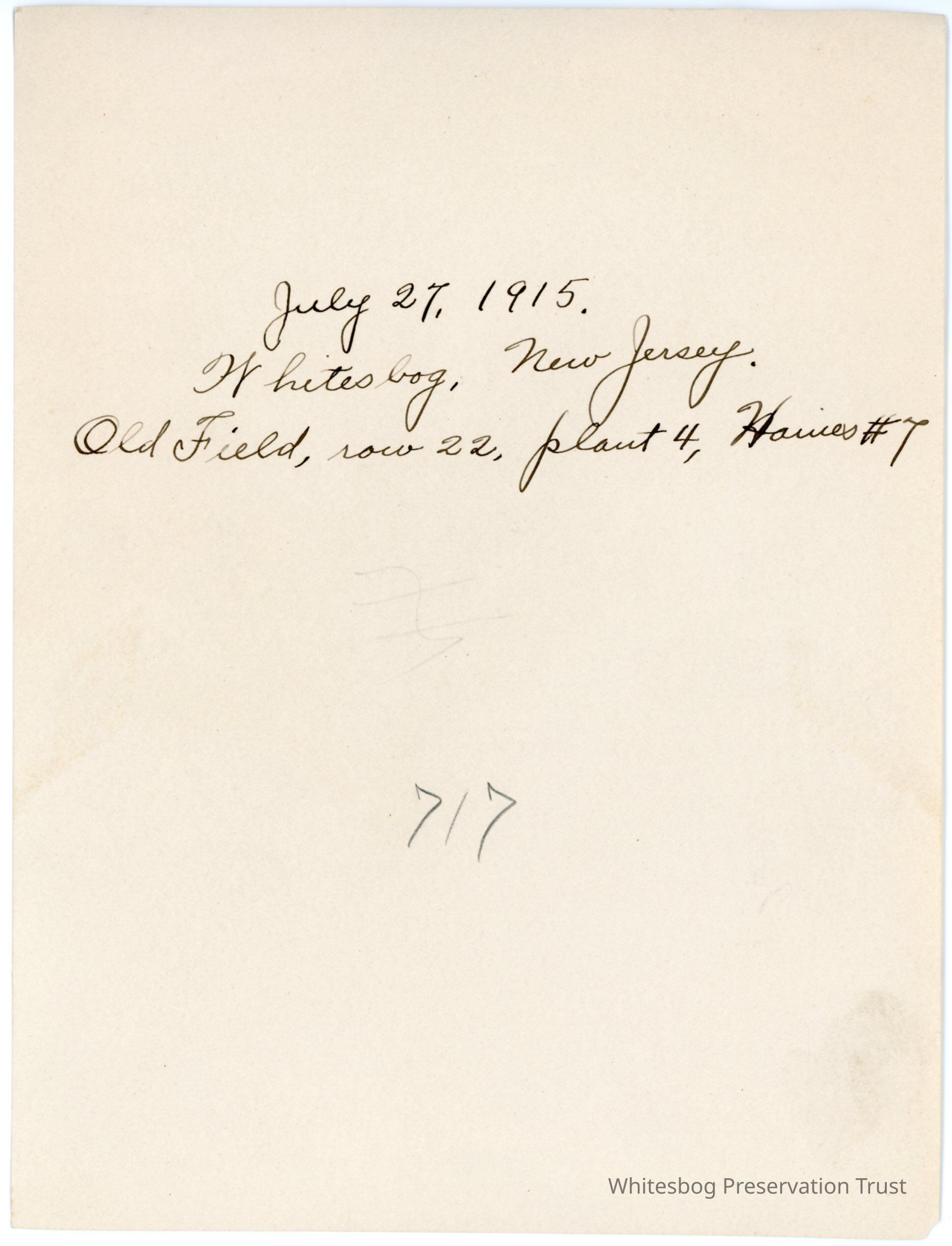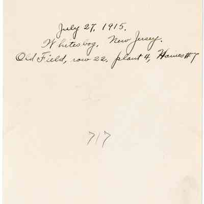 7/27/1915 "Old Field, row 22, plant 4, Haines #7"