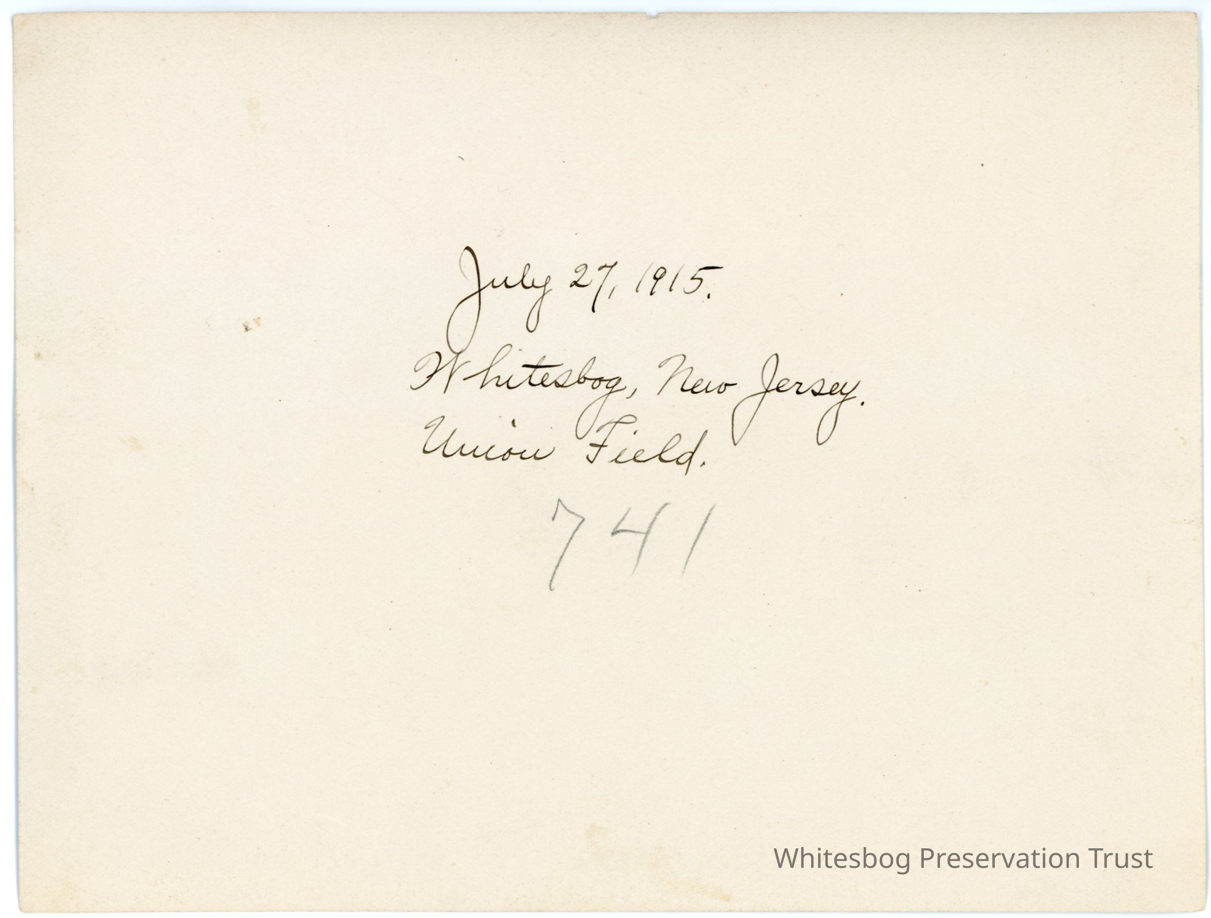 7/27/1915 "Union Field. Whitesbog, New Jersey."