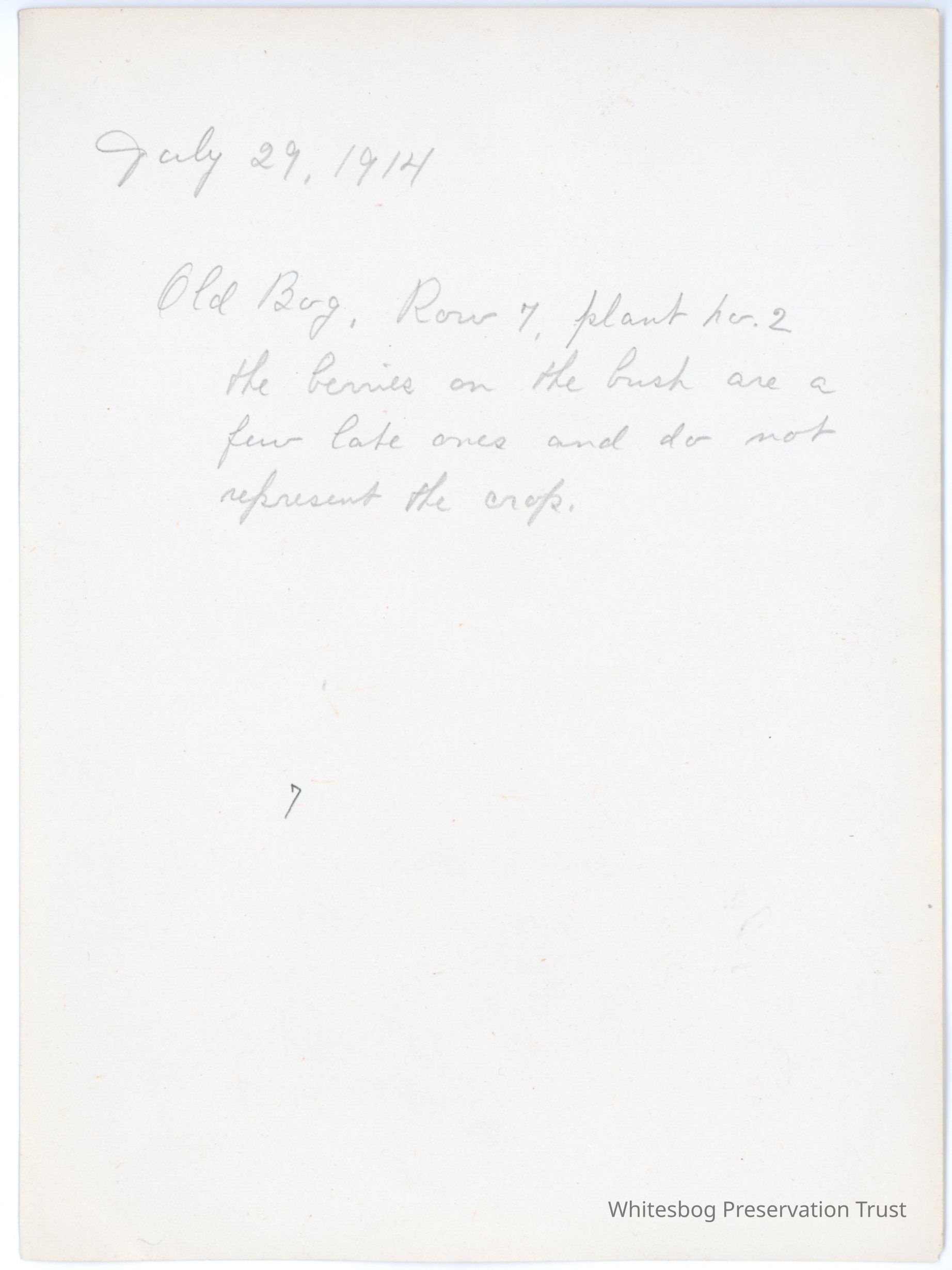 7/29/1914 "The berries on the bush are a few late ones and do not represent the crop."