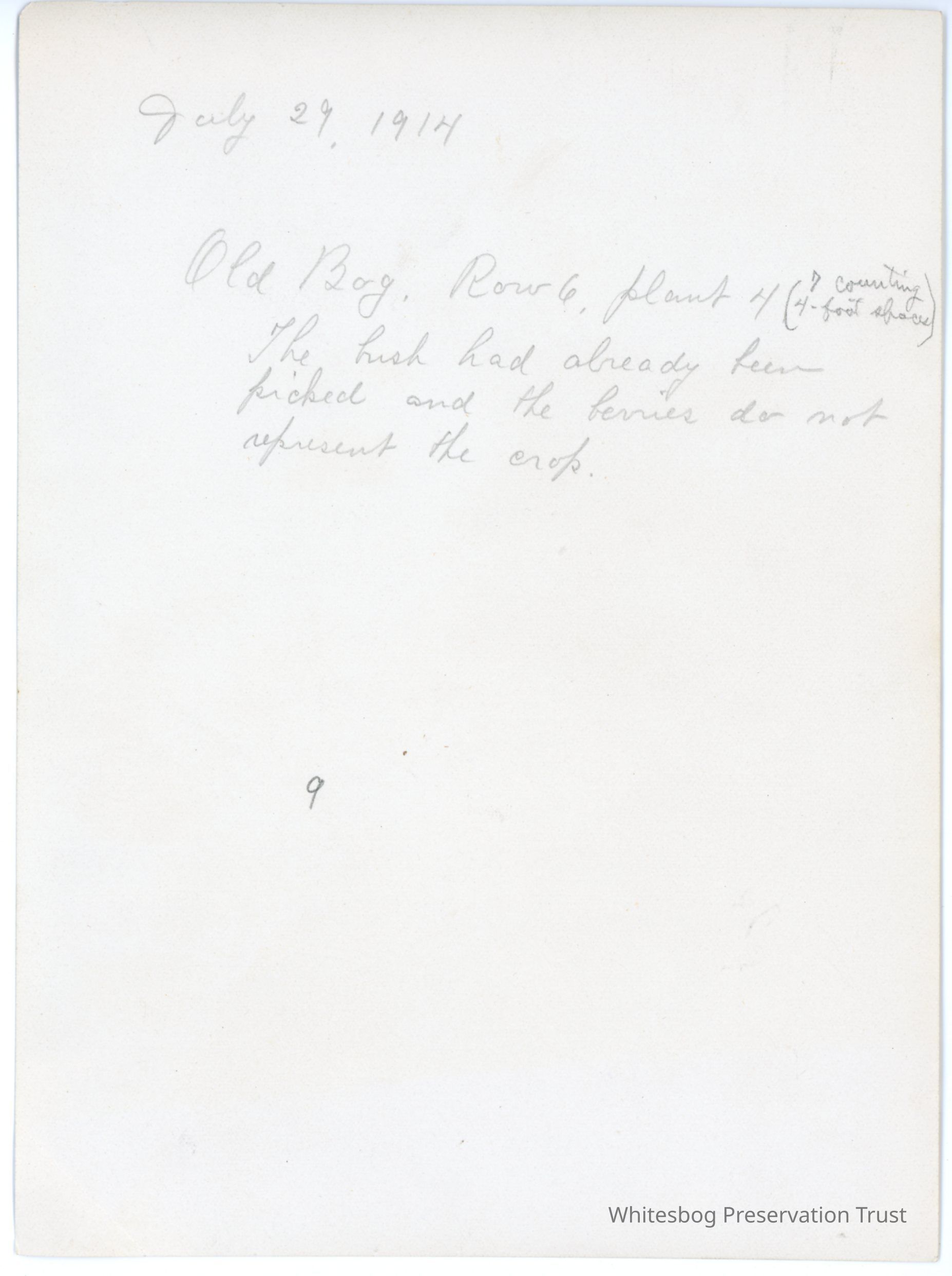 7/29/1914 "The bush had already been picked and the berries do not represent the crop."
