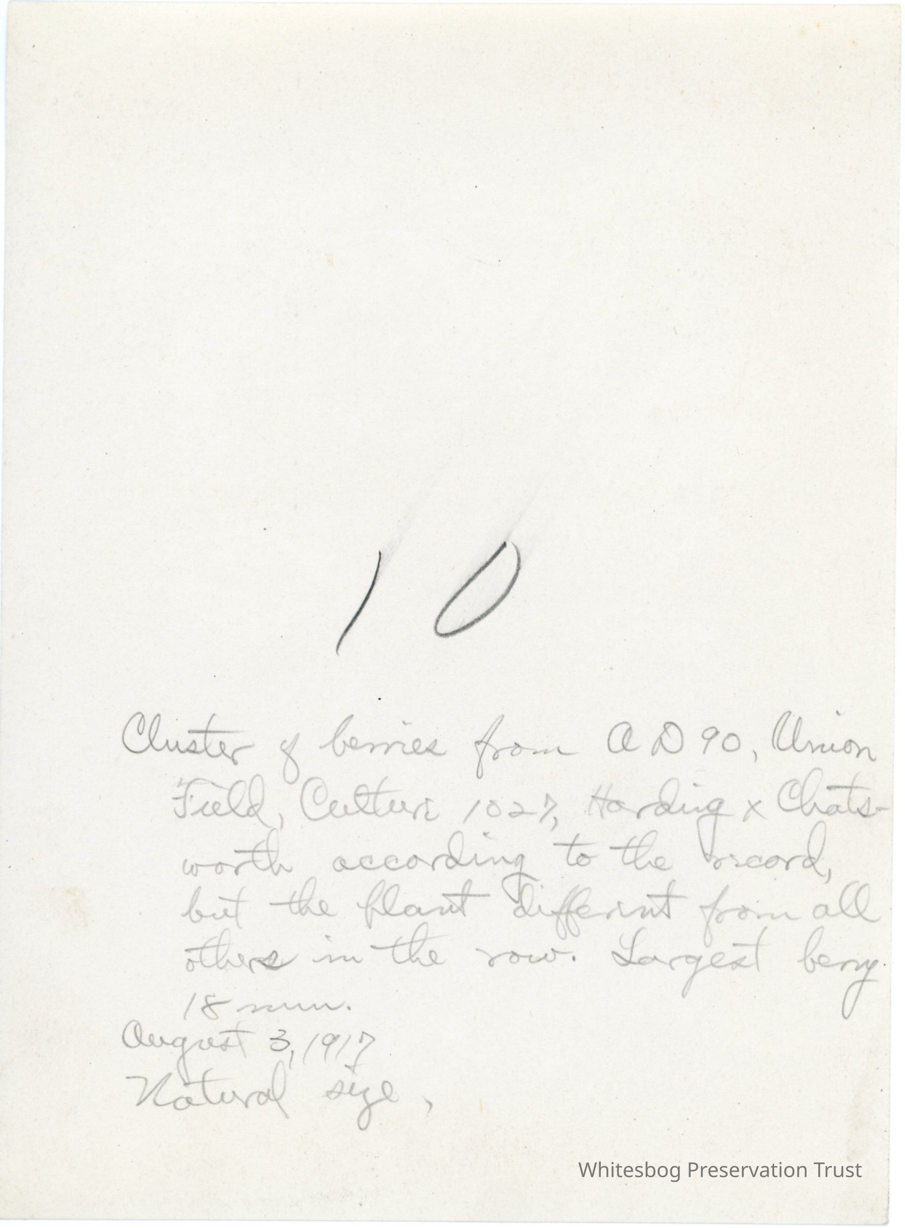 8/3/1917 "Harding x Chatsworth according to the record, but the plant different from all others in the row."
