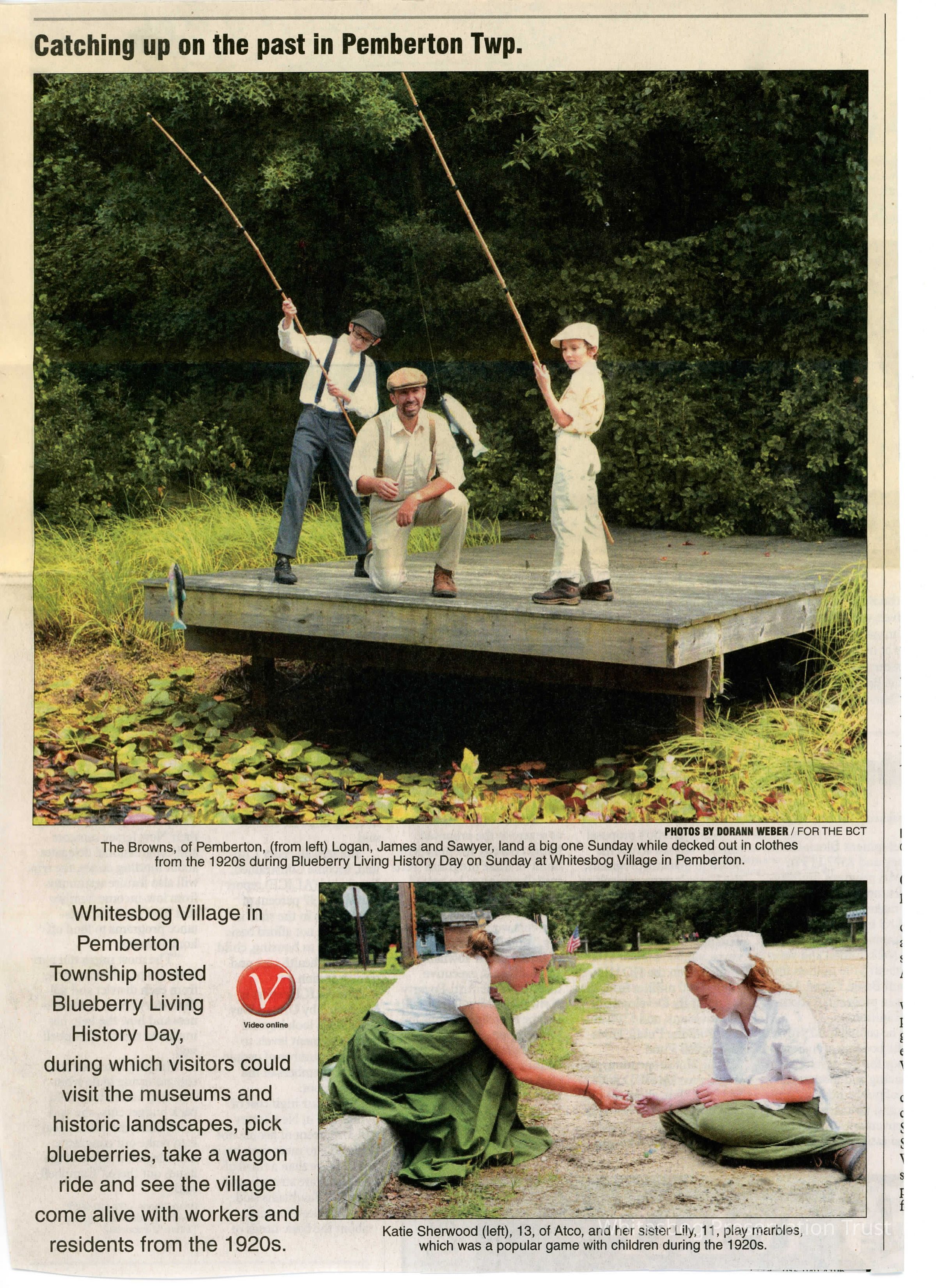 Front page mentioning of Blueberry Living History Day at Whitesbog Village. Includes two pictures.