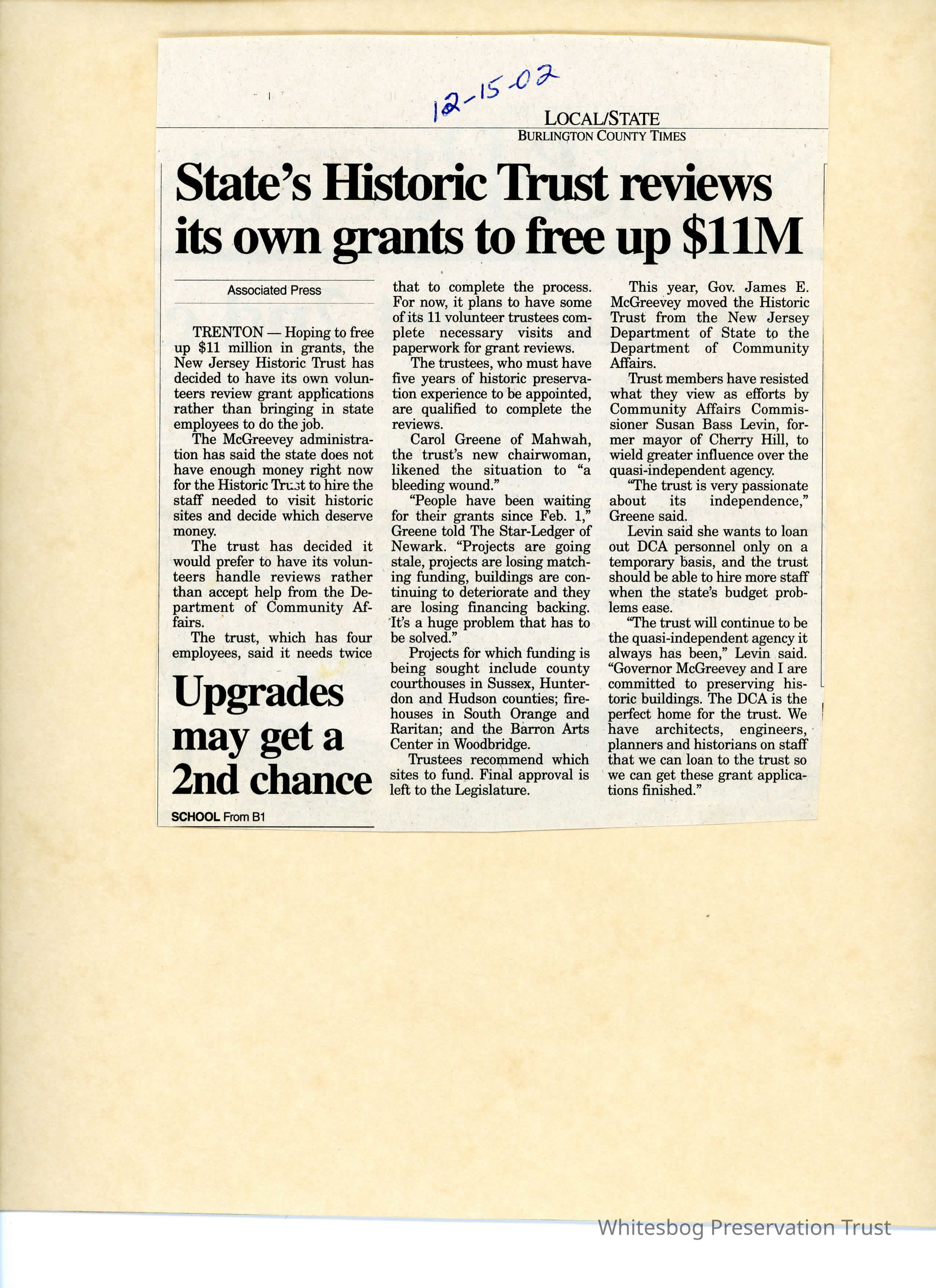 An article about the New Jersey Historic Trust using qualified volunteers to review grant applications rather than hiring more staff. This will help to save some money, leaving more available for the grants themselves.