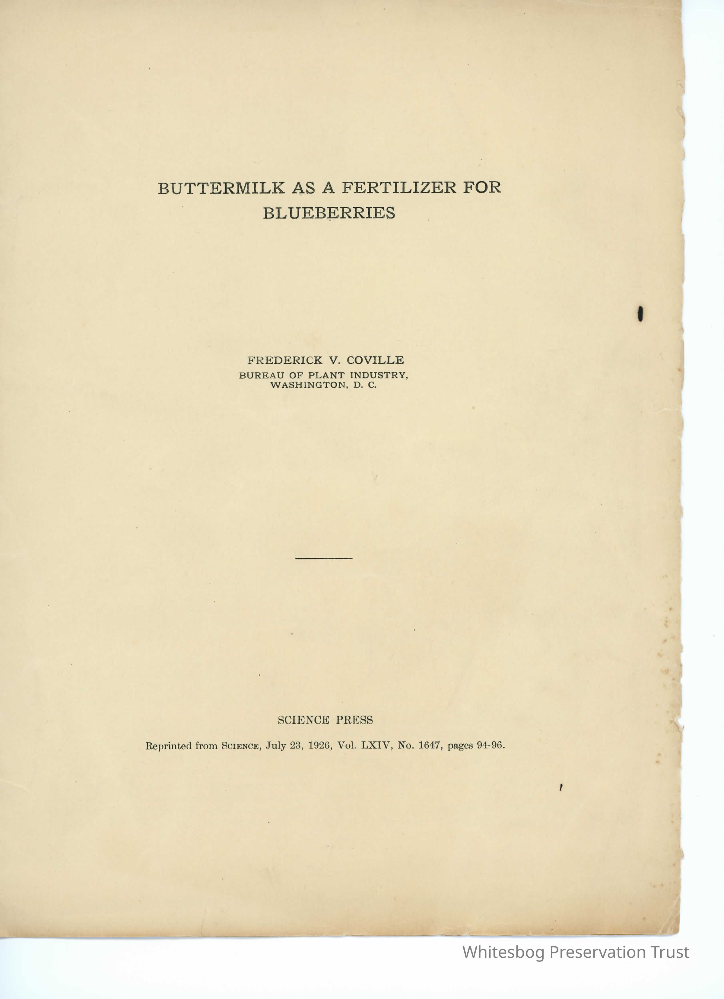 Buttermilk As A Fertilizer For BlueberriesEntry/Object ID
