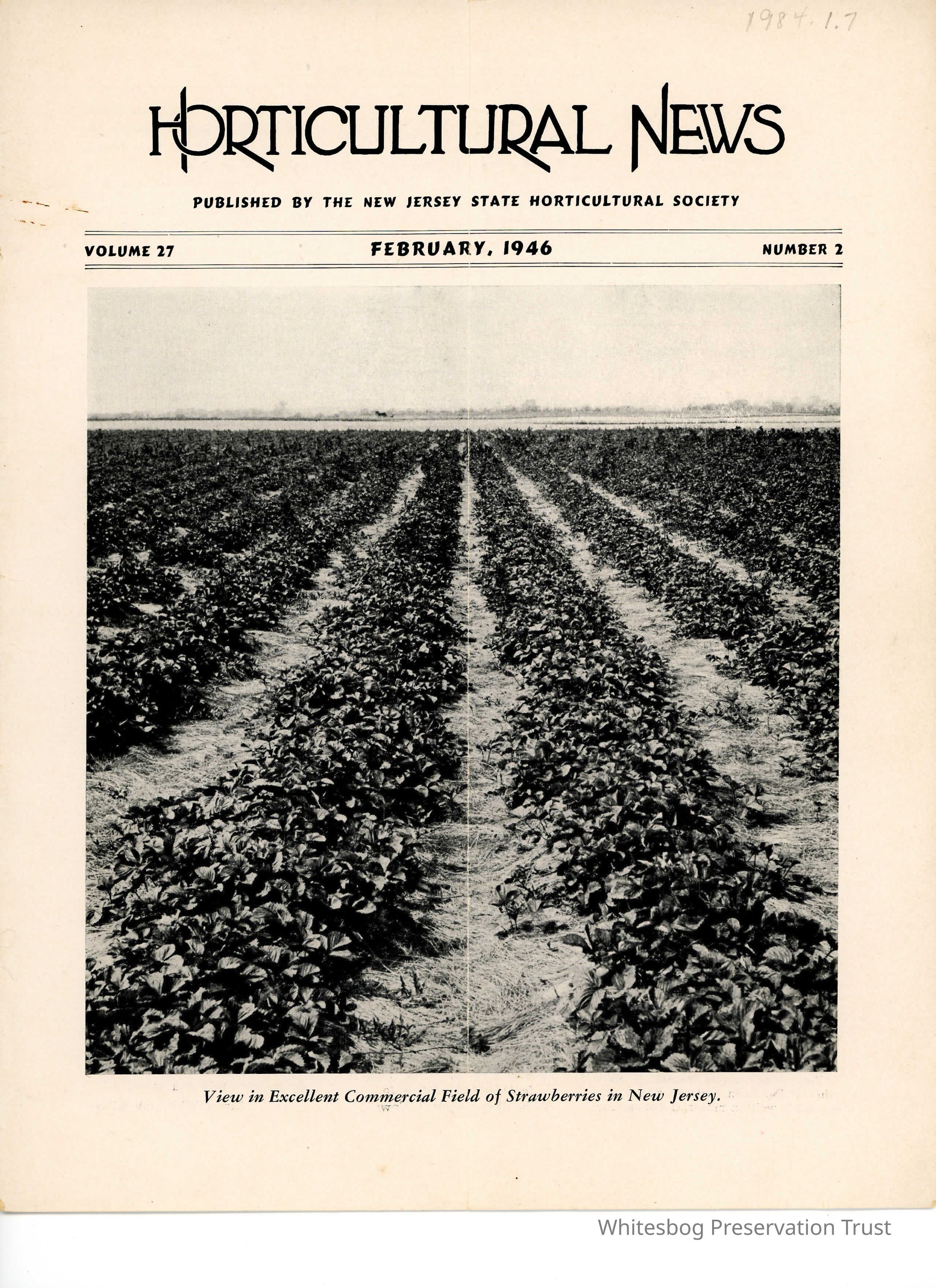 Summary: This magazine is published by the New Jersey State Horticultural Society. The article is a short history of the beginning work of Elizabeth White but also mentions her later work with blueberry experimentation. There is an interesting picture of the