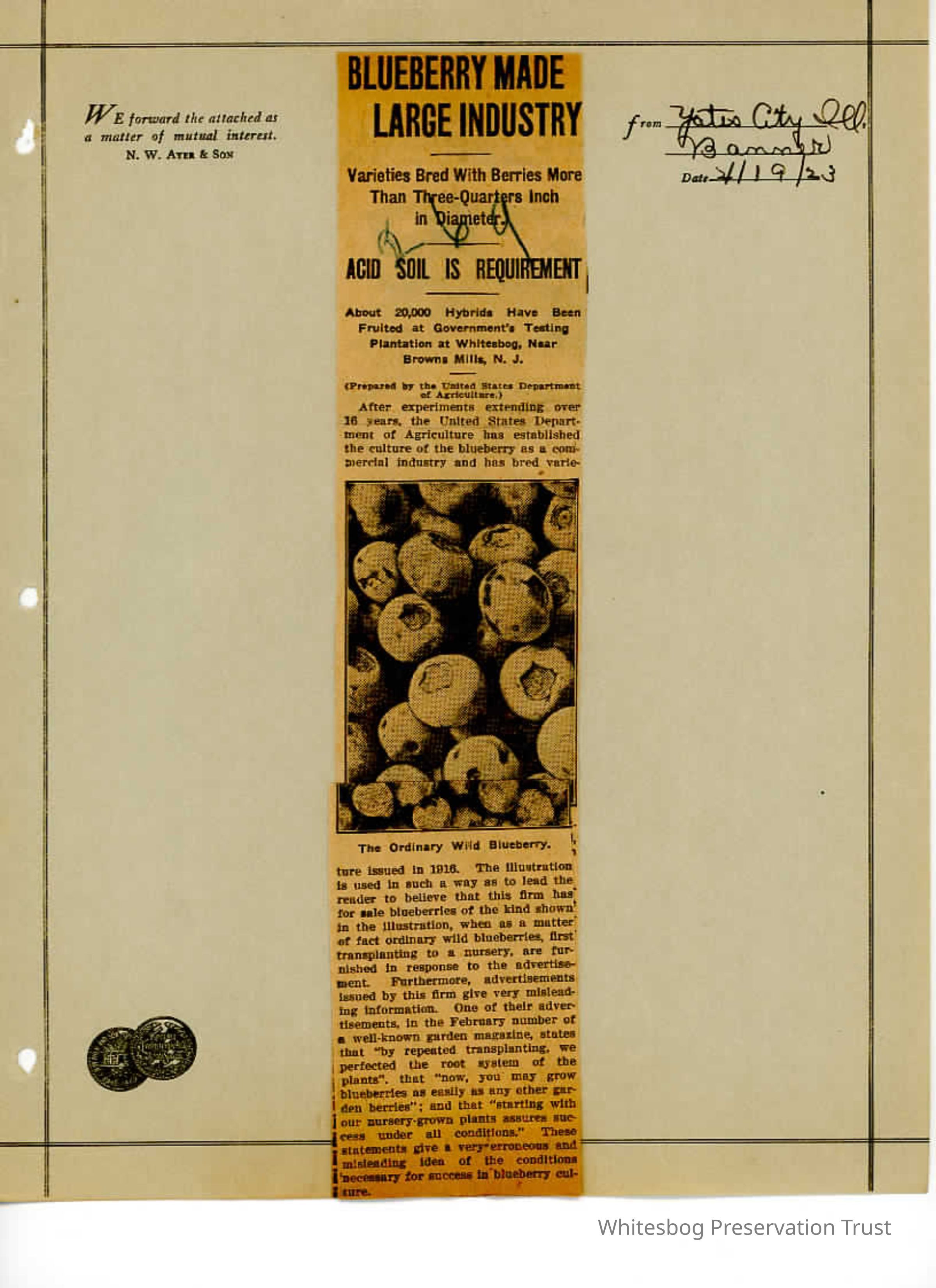 Nurseries are faking blueberry advertisements and advances in the commercial blueberry industry are being made.Collection