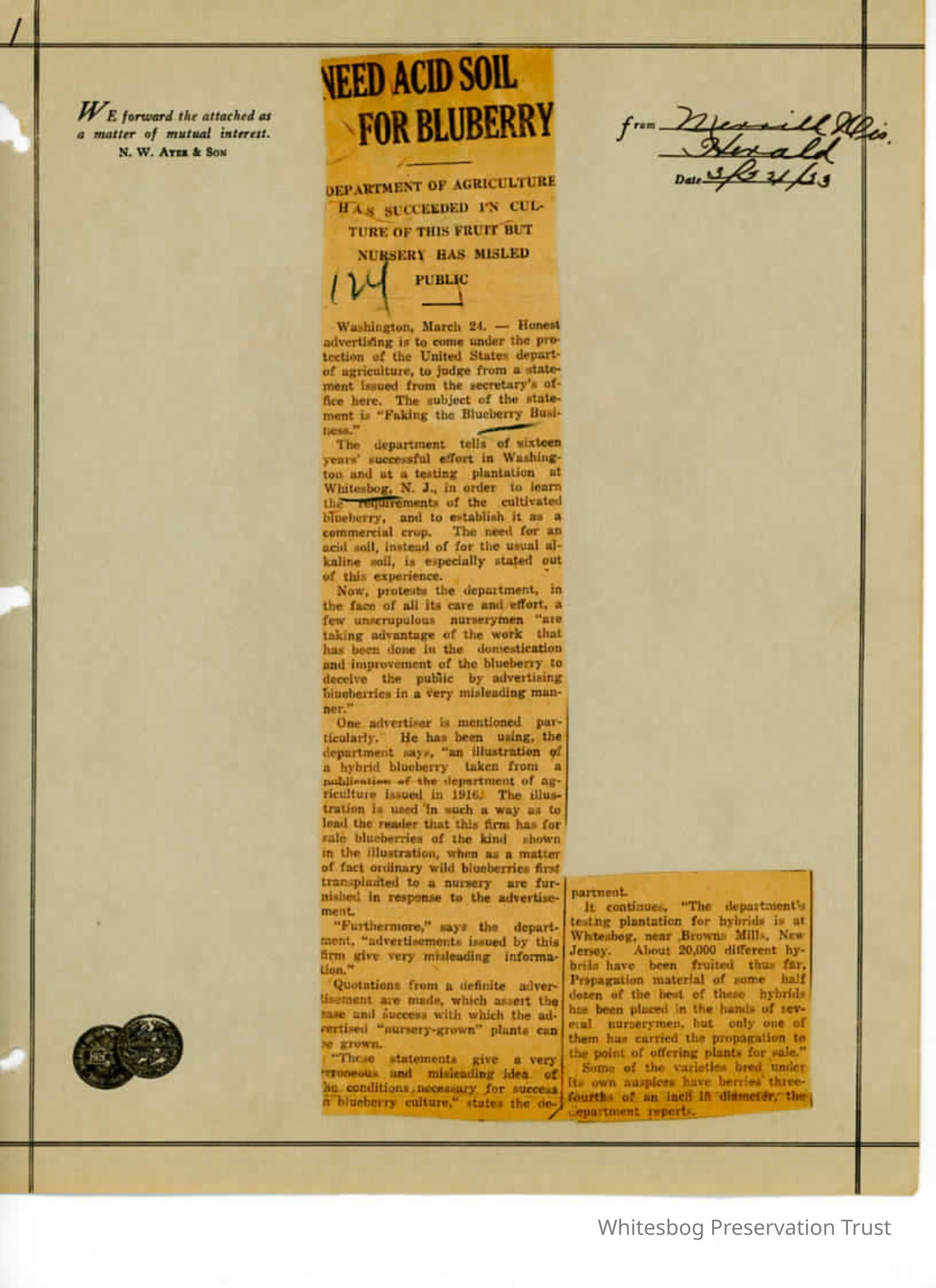"Need Acid Soil for Blueberry" - ????? Herald