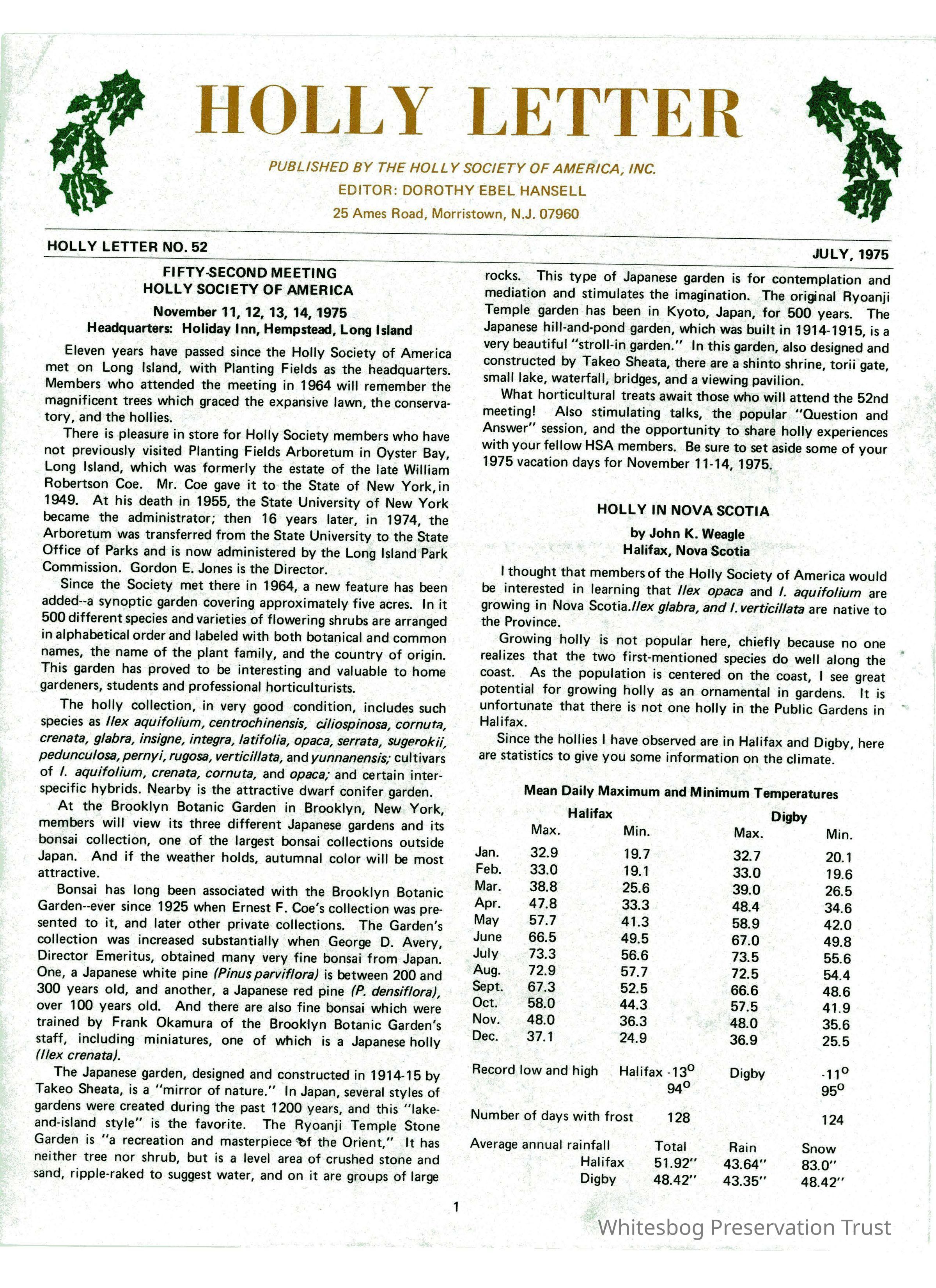 Most interesting information is a listing of varieties of American Holly with the source for each and a history of Wilfrid Wheeler and his farm.
