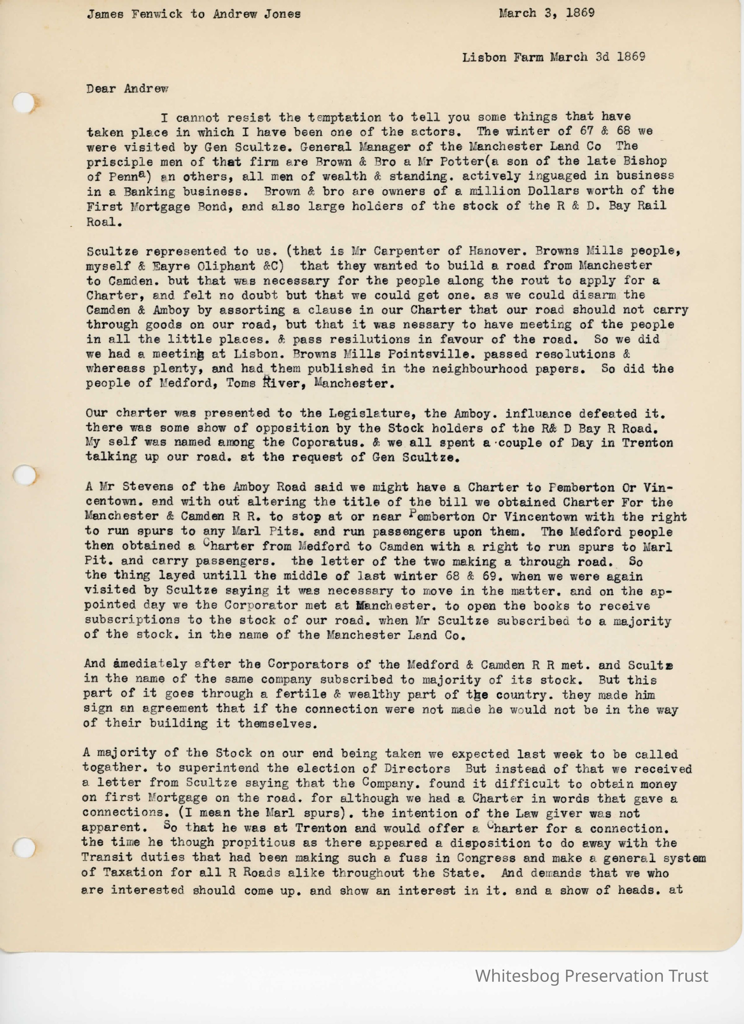 James Fenwick to Andrew Jones - March 3, 1869Entry/Object ID