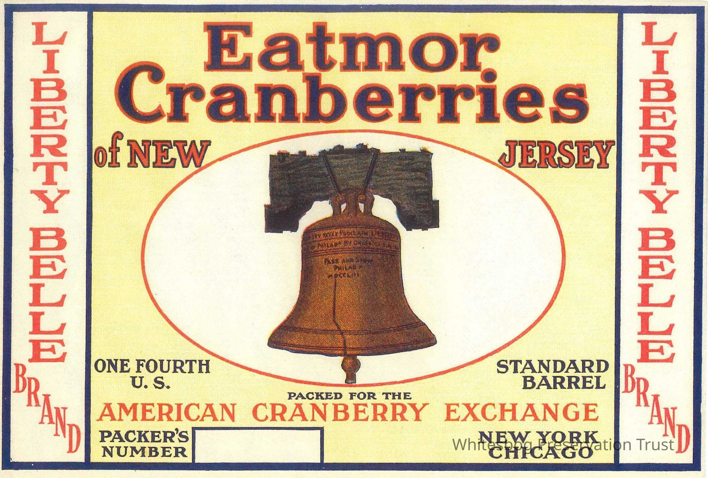 Cranberries were never marketed according to varietal (cultivar) names as apples are today. During the heyday of fresh fruit sales, they were sold by brand names or labels. Following in the footsteps of Wisconsin and New England Cranberry Companies, the Grower's Cranberry Company in New Jersey began in 1911 (until ca. 1947) using the brand name "Eatmor" to classify their berries with near scientific precision. Each variety of berries was divided into several brands by determining the degree of coloration, size, and keeping quality during shipment. A special, colorful brand label representing high quality was provided for each grade. About 32 brand labels were created, most of them under the Eatmor name. {Eck, Paul. The American Cranberry. Rutgers.1990}