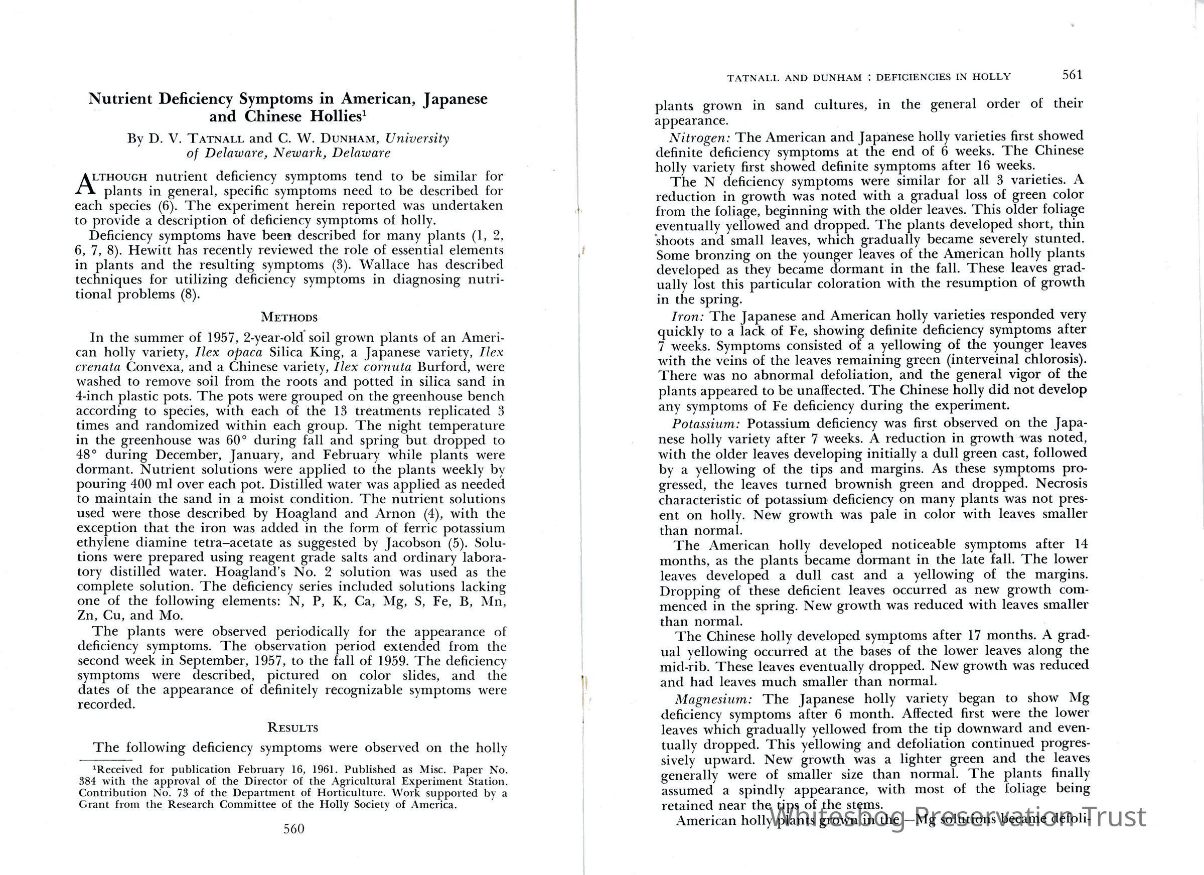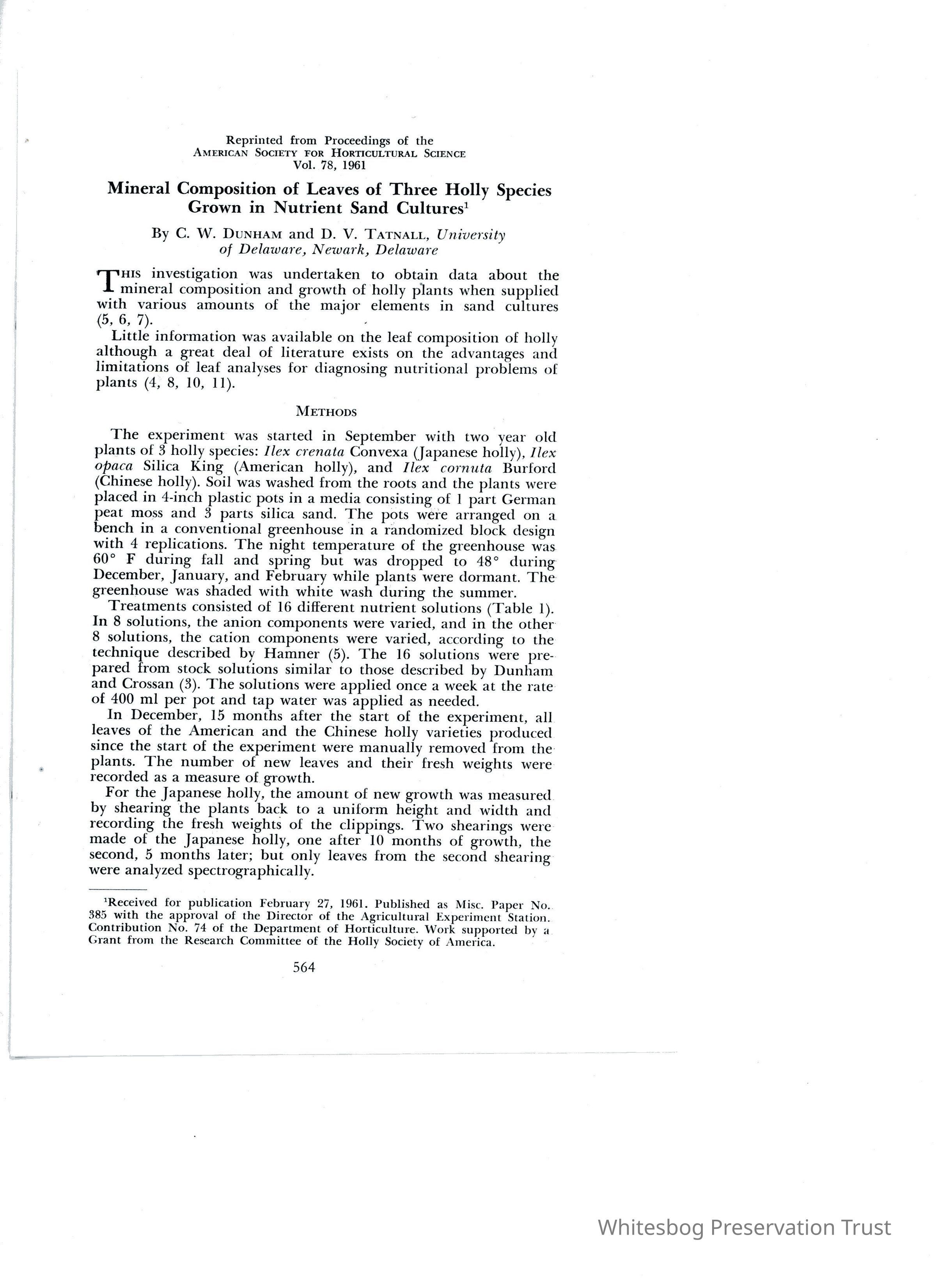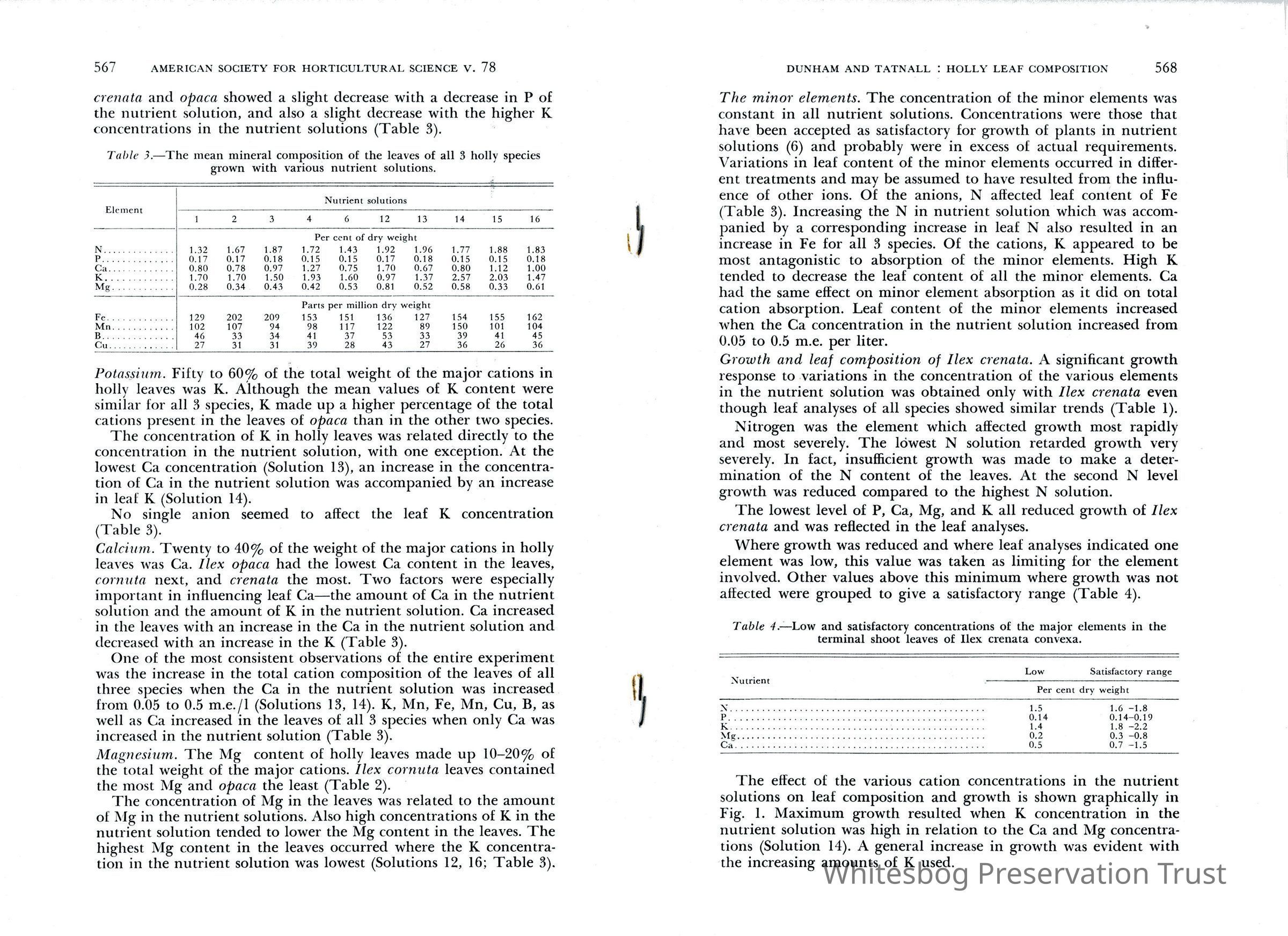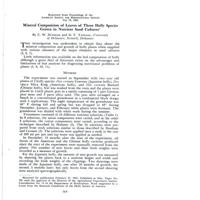 Mineral Composition of Leaves of Three Holly SpeciesEntry/Object ID