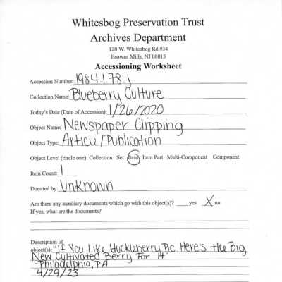 "If You Like Huckleberry Pie, Here's the Big New Cultivated Berry For It" - Philadelphia, Pennsylvania Record