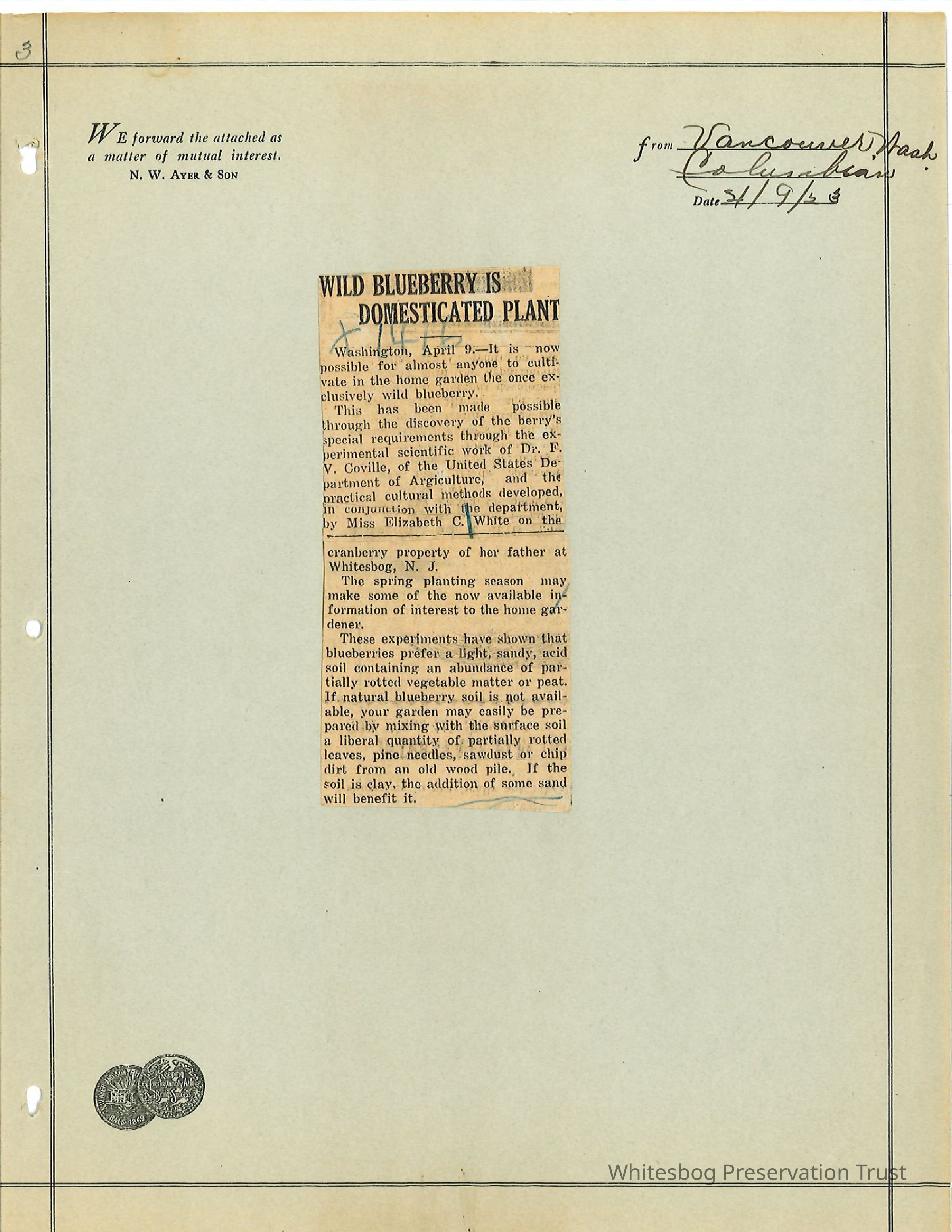 "Wild Blueberry is Domesticated Plant" - Vancouver, Washington Columbian