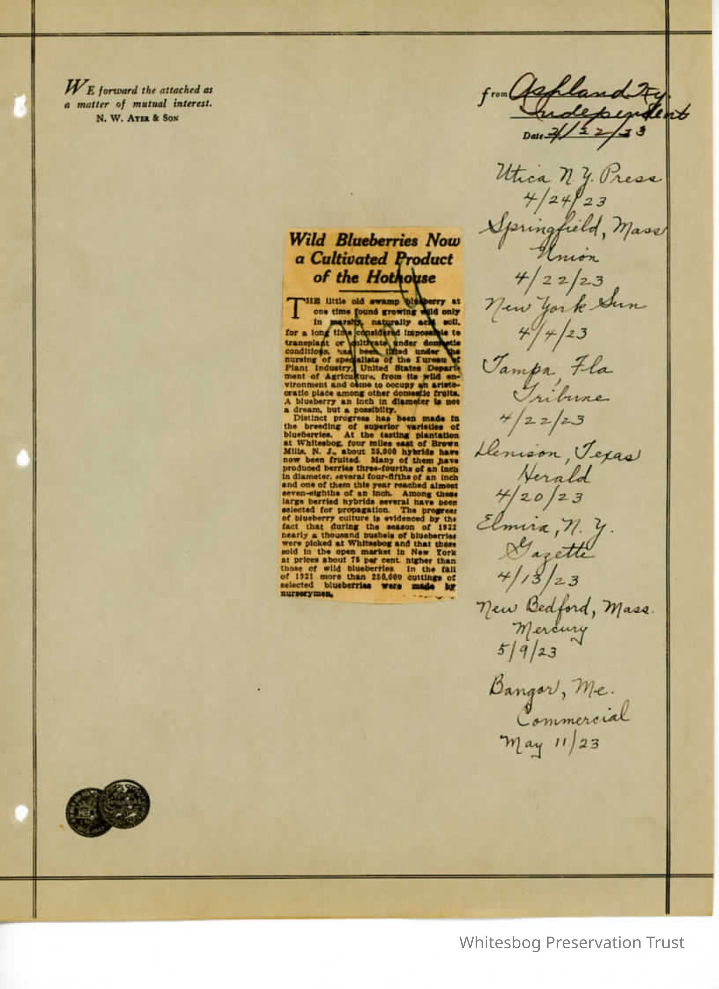 - Springfield, Massachusetts Union 4/22/1923