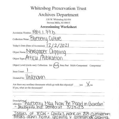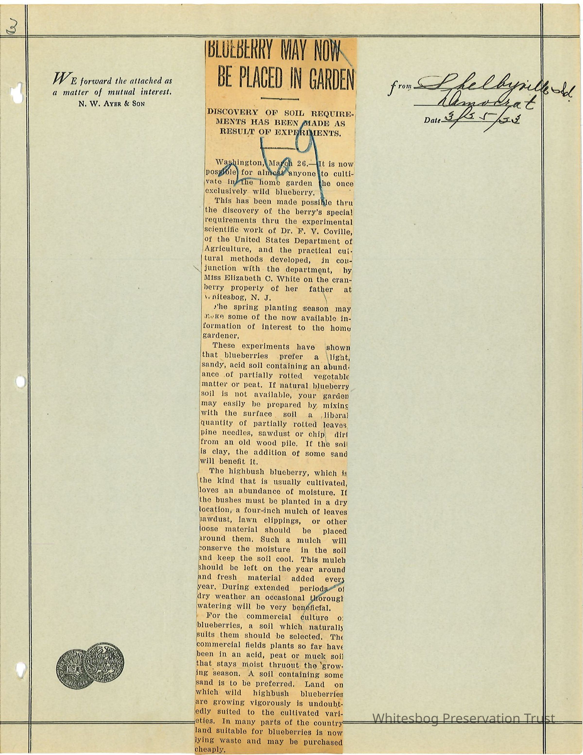 Speaks of ECW and Coville's work on the propagation of domesticated blueberriesCollection