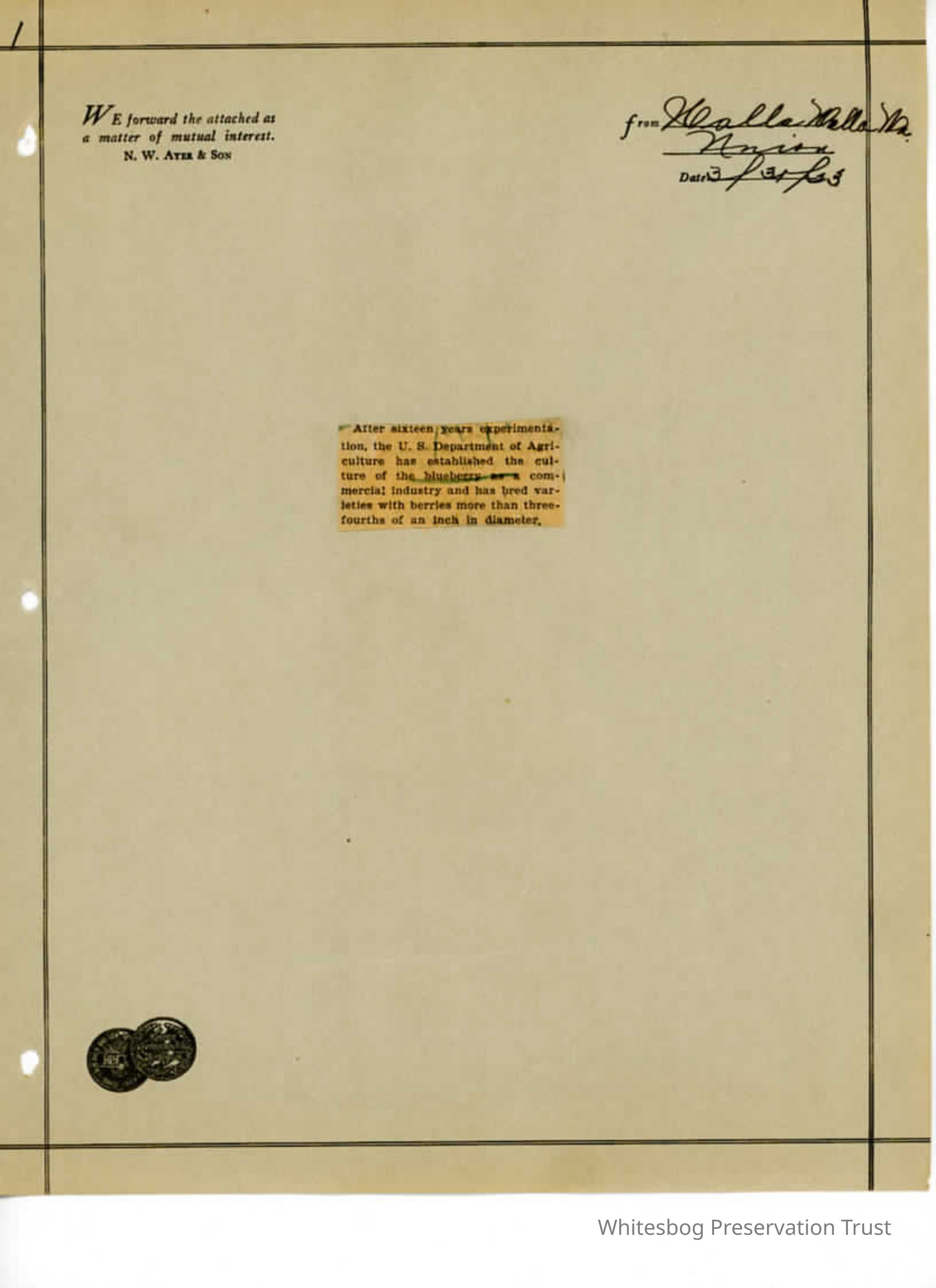 "After 16 years experimentation, the U.S. Department of Agriculture has established the culture of the blueberry as a commercial industry and has bred varieties with berries more than 3/4 inch in diameter"Collection