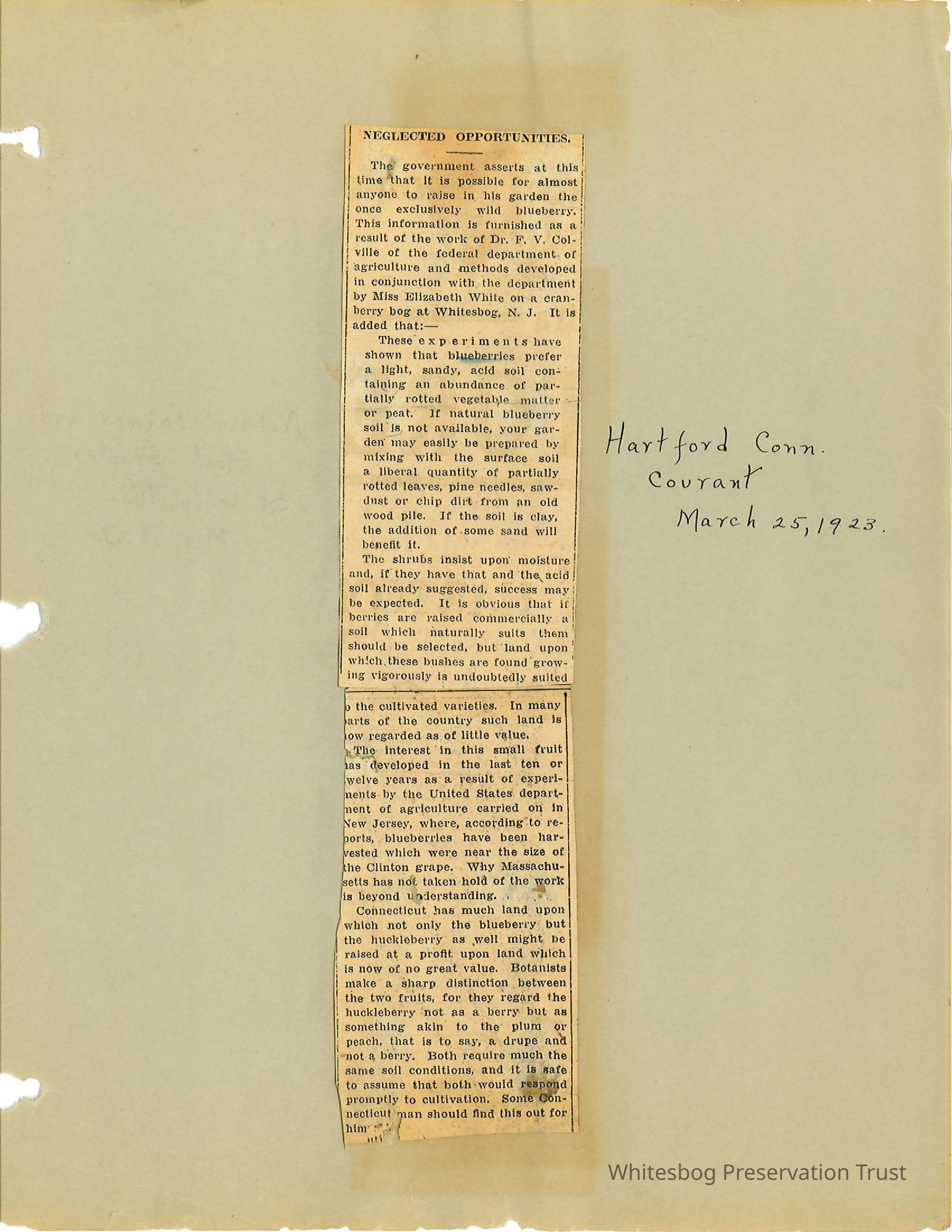 Nurserymen are taking advantage of information from the work at Whitesbog by the USDA by trying to sell blueberry bushes that were not what was advertised.Collection