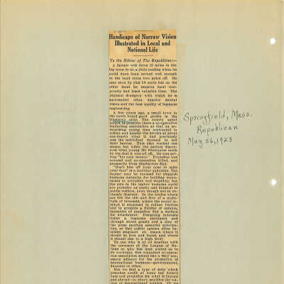 2. "Handicaps of Narrow Vision Illustrated in Local and National Life" - Springfield, Mass. Republican
