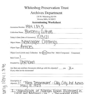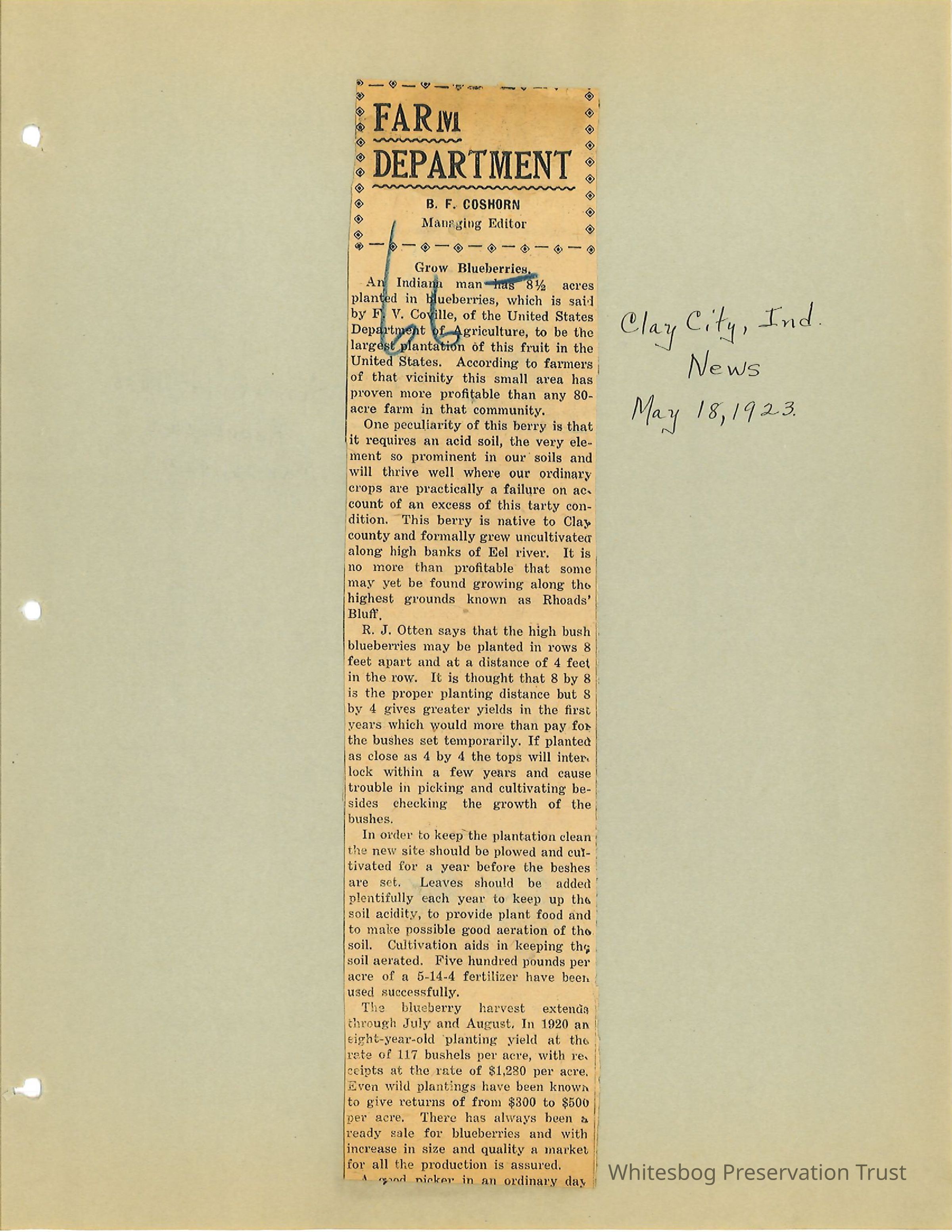 A letter to the editor complains about farmers trading in big cities as opposed to local areas; speaks of a man who create a co-op for blueberries. Political overtones.