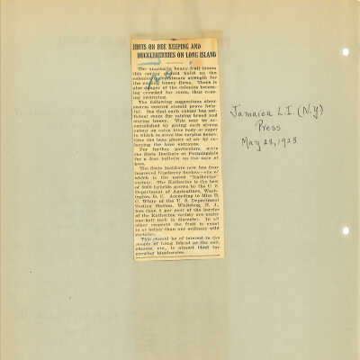 5. "Hints on Bee Keeping and Huckleberries on Long Island" - Jamaica L.I. (N.Y.) Press