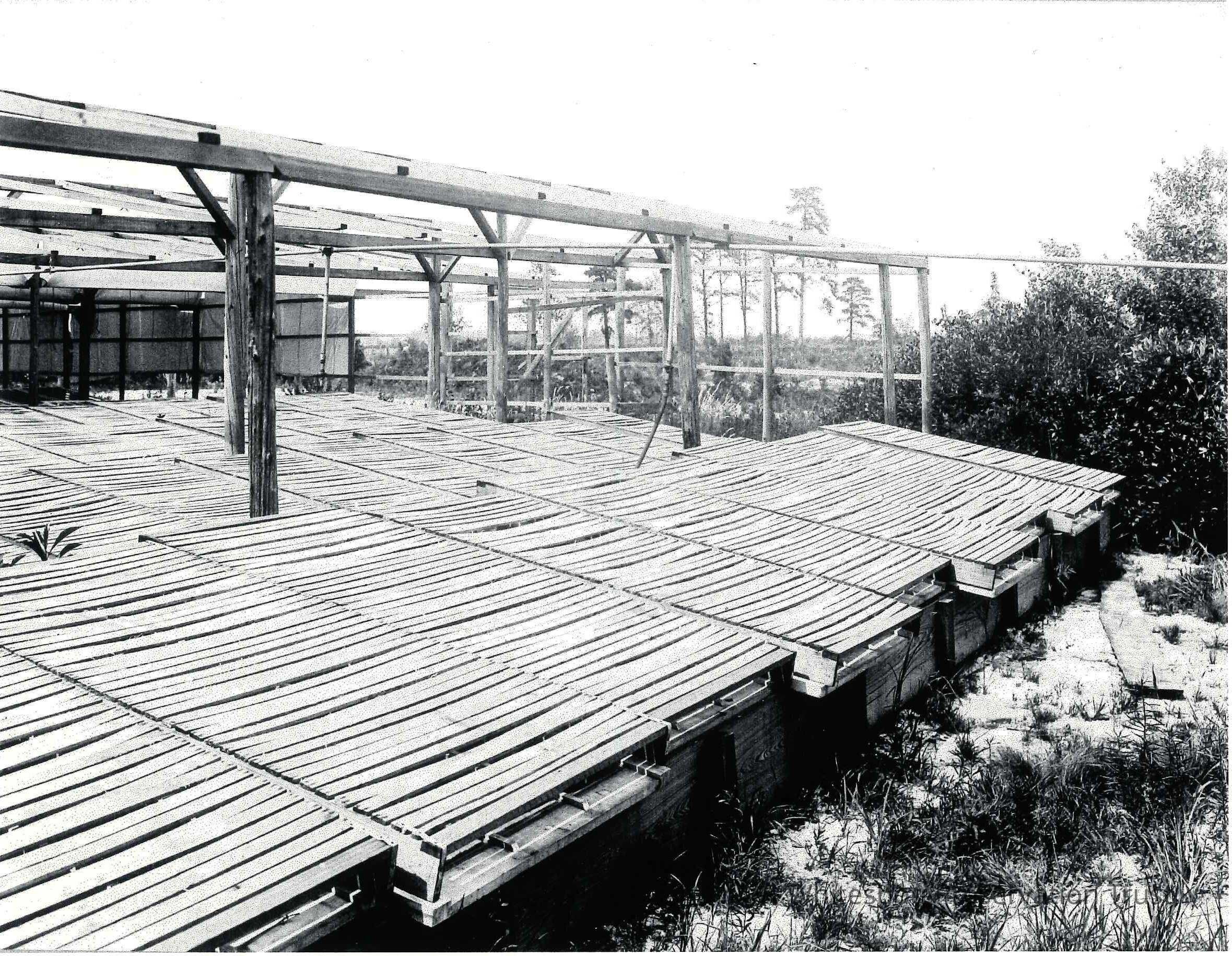 A photograph of a propagating frame covered with wood slats.