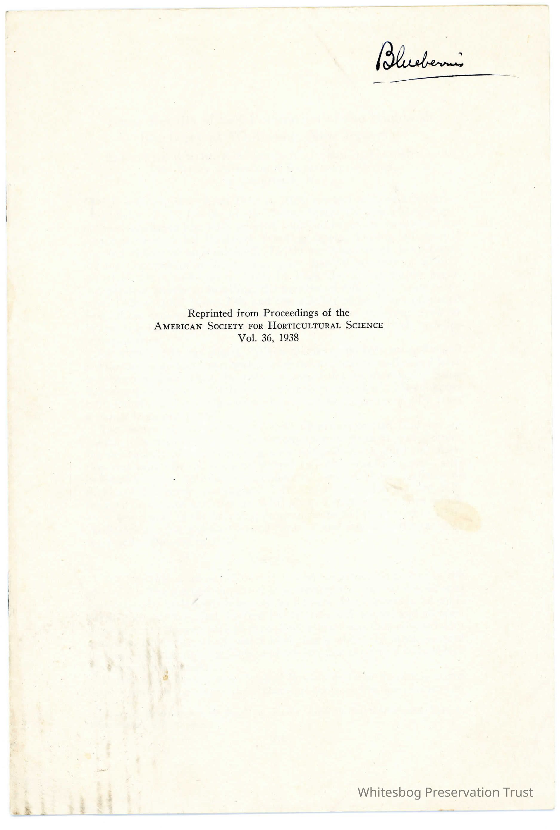 Summary: This article discusses the differences in results obtained by self-pollination and cross-pollination of blueberry bushes. The methodology used to insure the integrity of the experimentation is described in detail. Results are presented in two charts: one set of experimentation done in conjunction with Dr. Coville (1911-1928) and one conducted by Elizabeth White in 1935. Results agree with the findings of Colville and Beckwith and disagree with those of Merrill.Collection