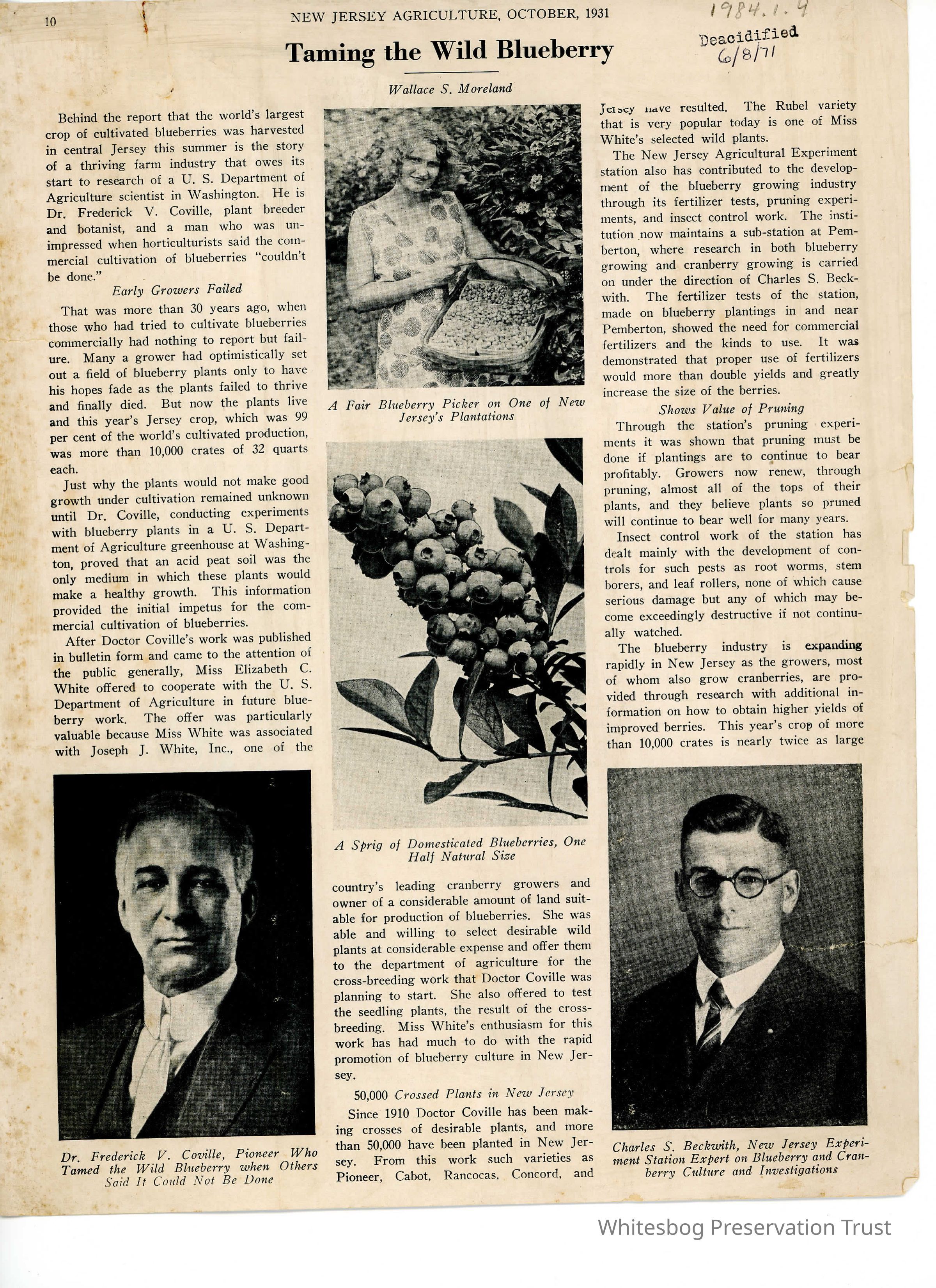 a) Dr. Frederick Coville in pursuing the possibility of commercial cultivation of blueberries