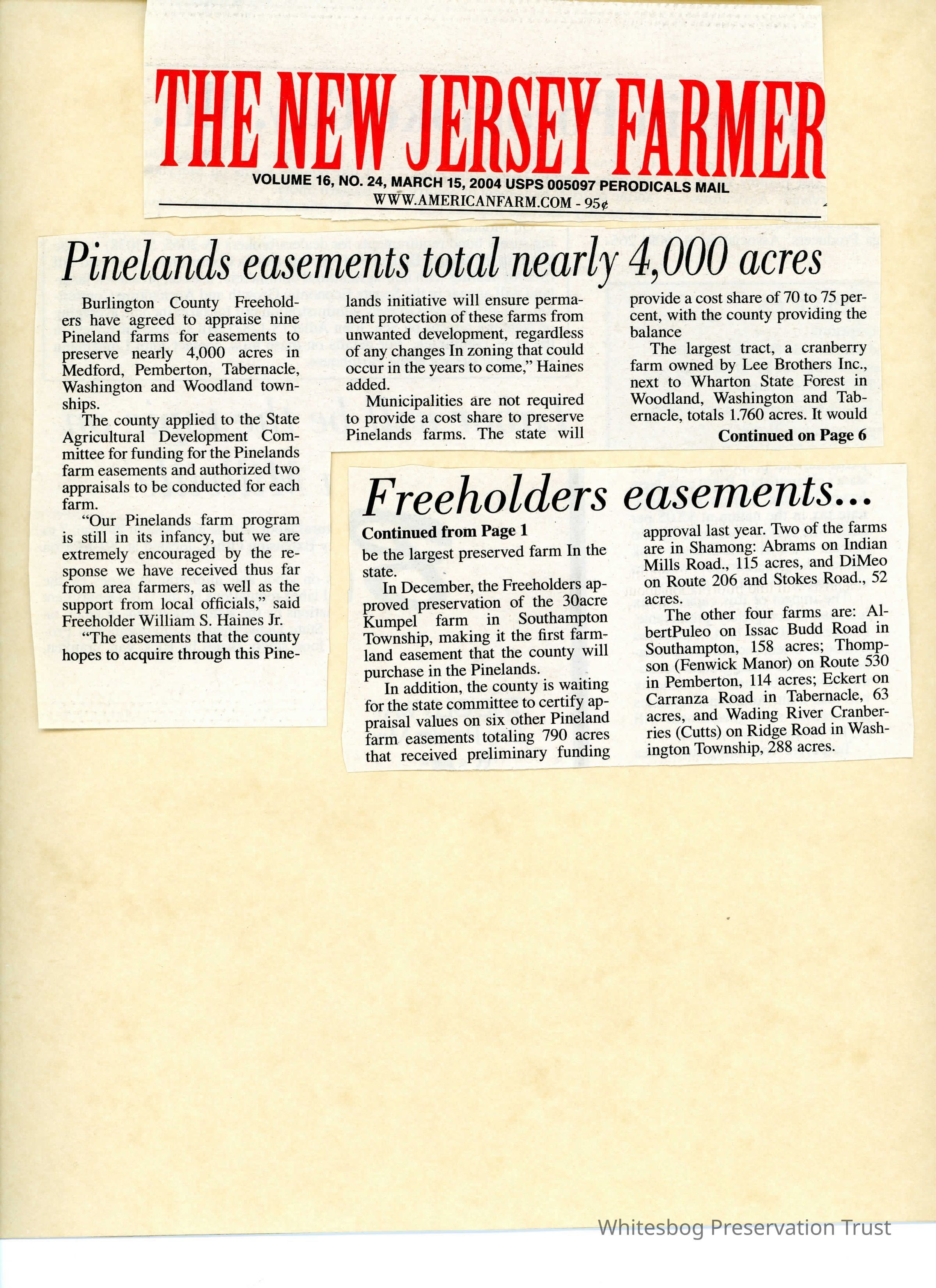 An article about preserving farmland in New Jersey, it mentions Fenwick Manor. This was found cut into three pieces.