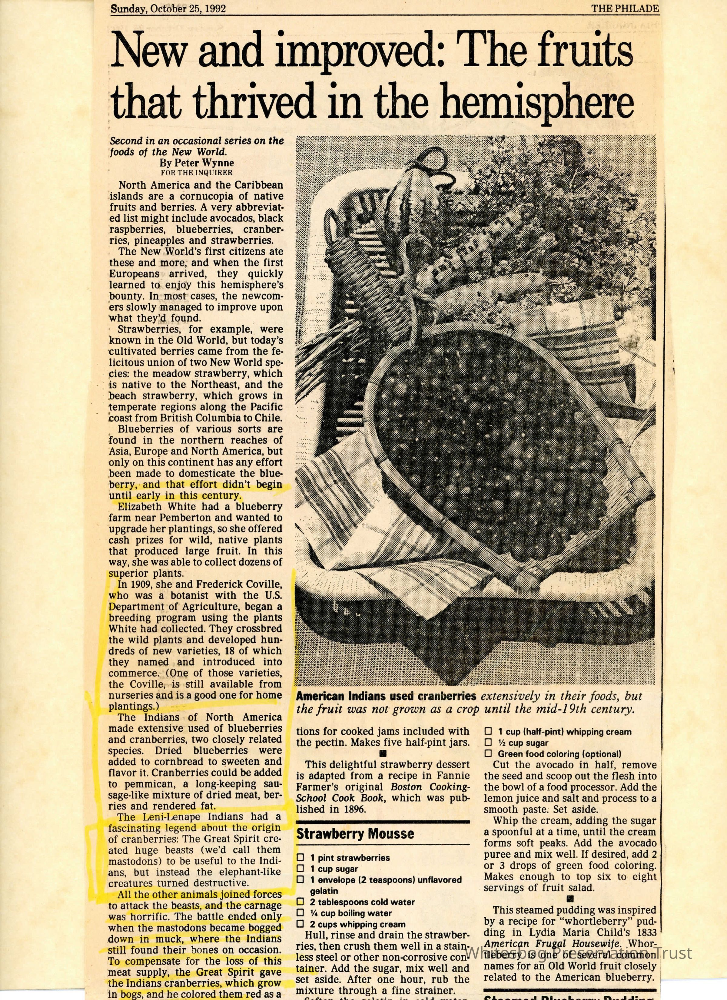 This was found with yellow highlighter marks on the parts that were about blueberries and cranberries.
