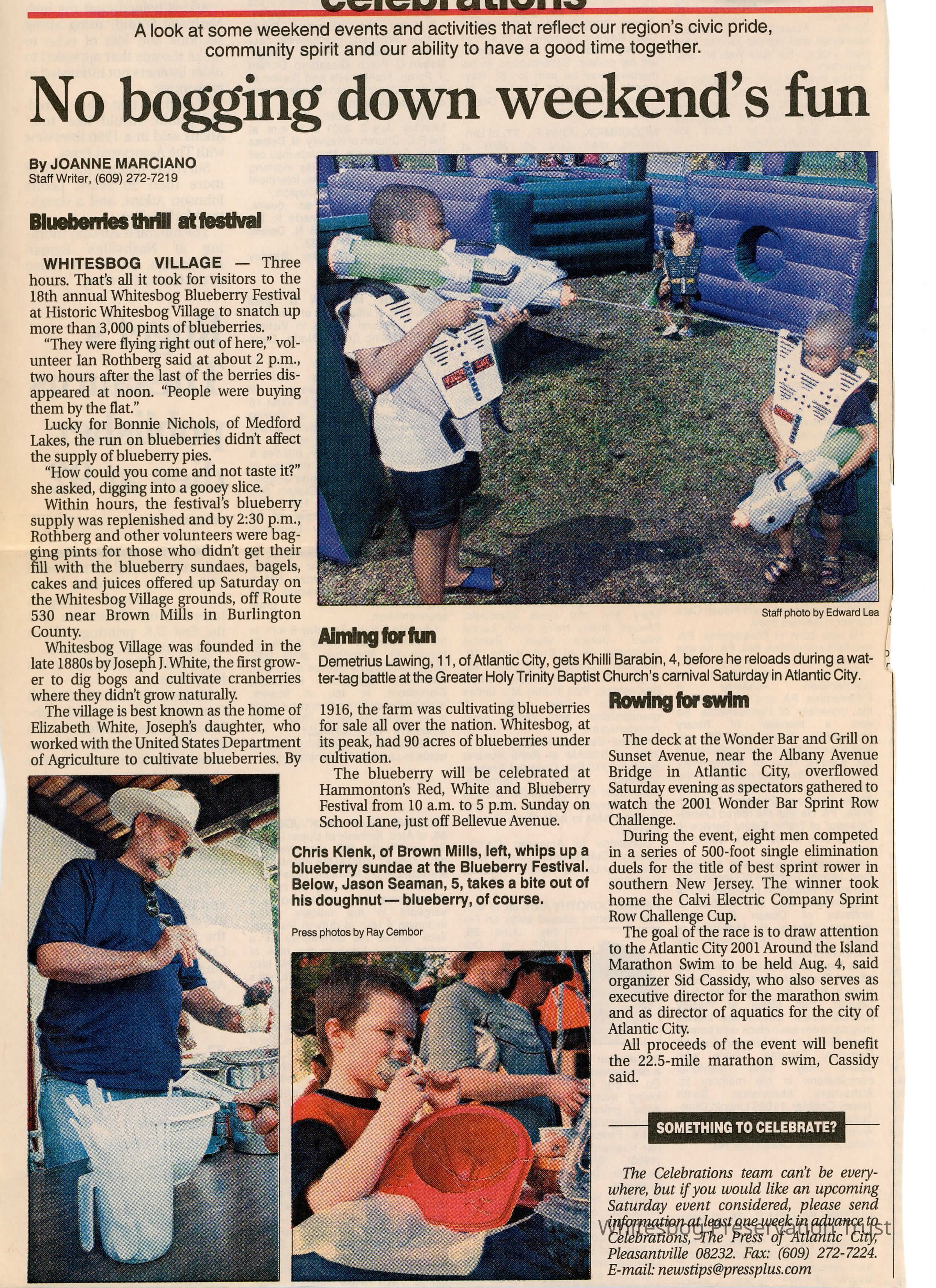 An article about the 2001 blueberry festival, makes note of how quickly blueberries were being purchased.