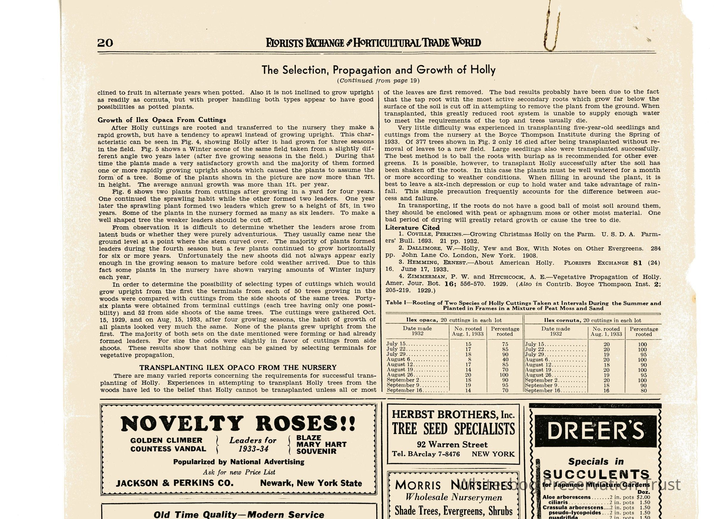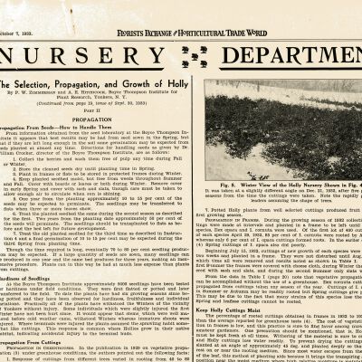 A two-part article published in the Florists Exchange section of the Horticultural Trade World, written by P.W. Zimmerman and A.E. Hitchcock of the Bryce Thompson Institute.