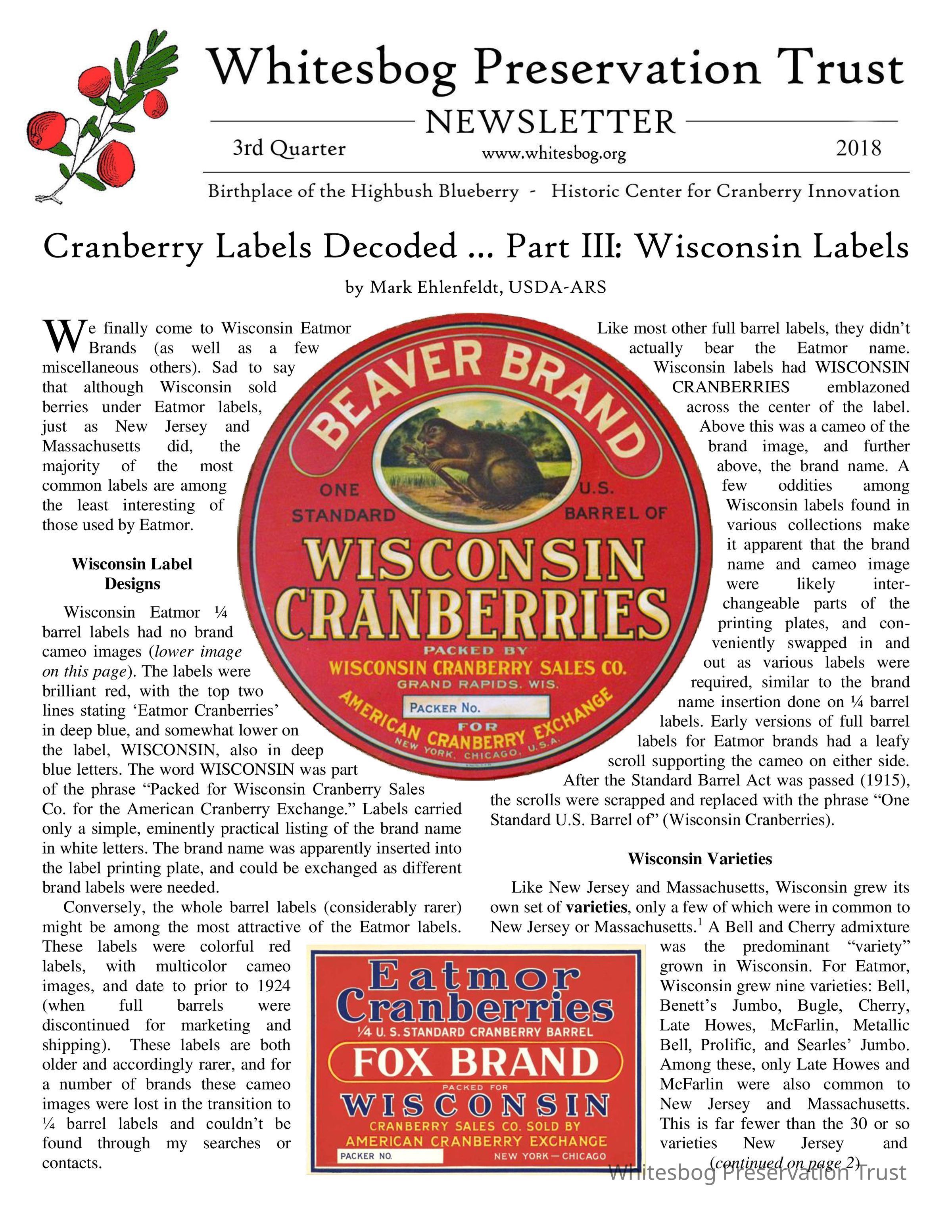 This issue features an article about cranberry labels in Wisconsin.