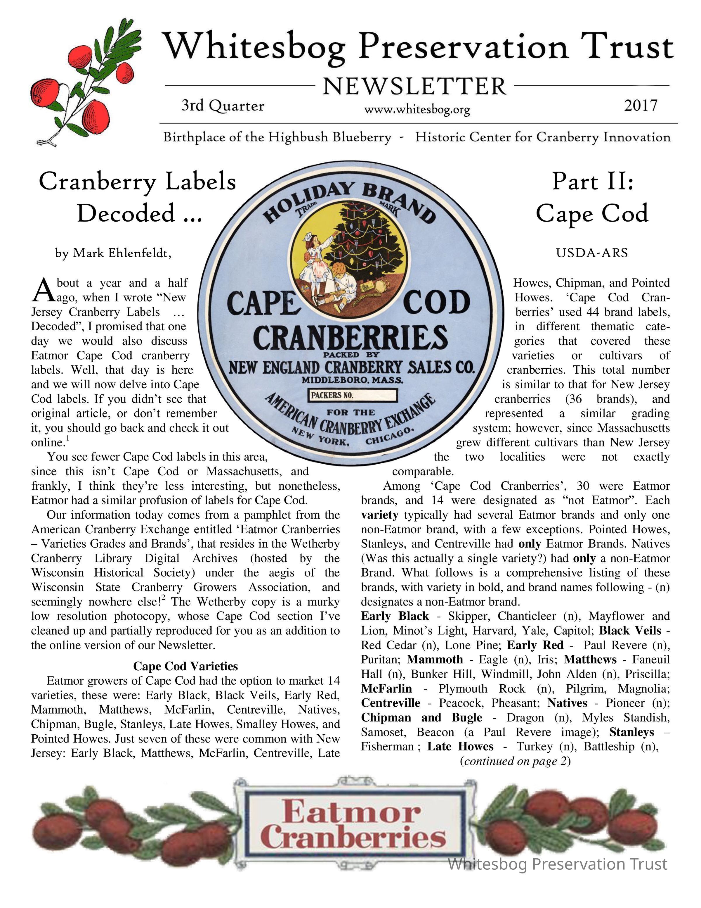 This issue features an article outlining the labels used for cranberries grown in the Cape Cod area.