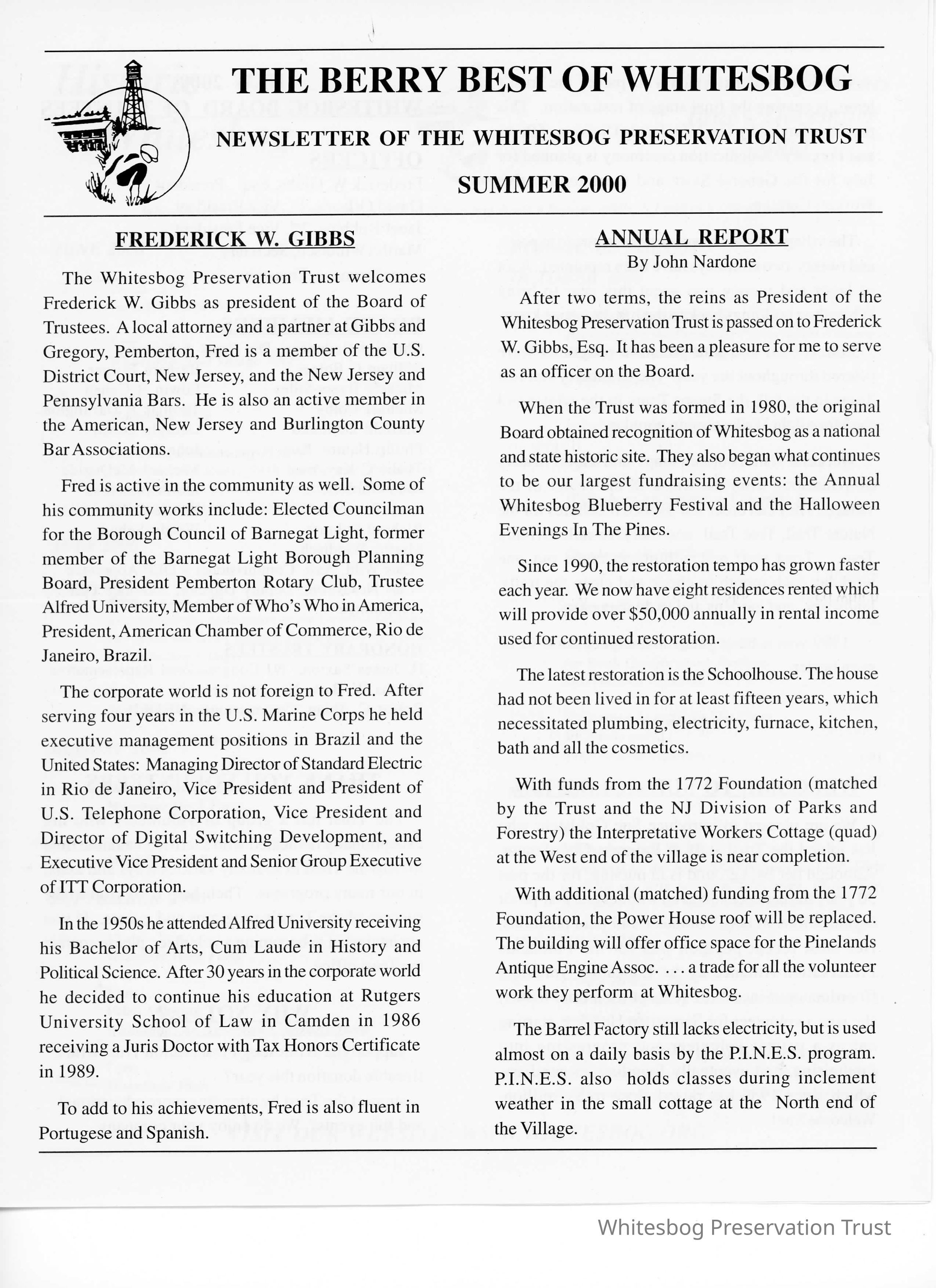 The Whitesbog Preservation Trust Newsletter - The Berry Best of WhitesbogEntry/Object ID