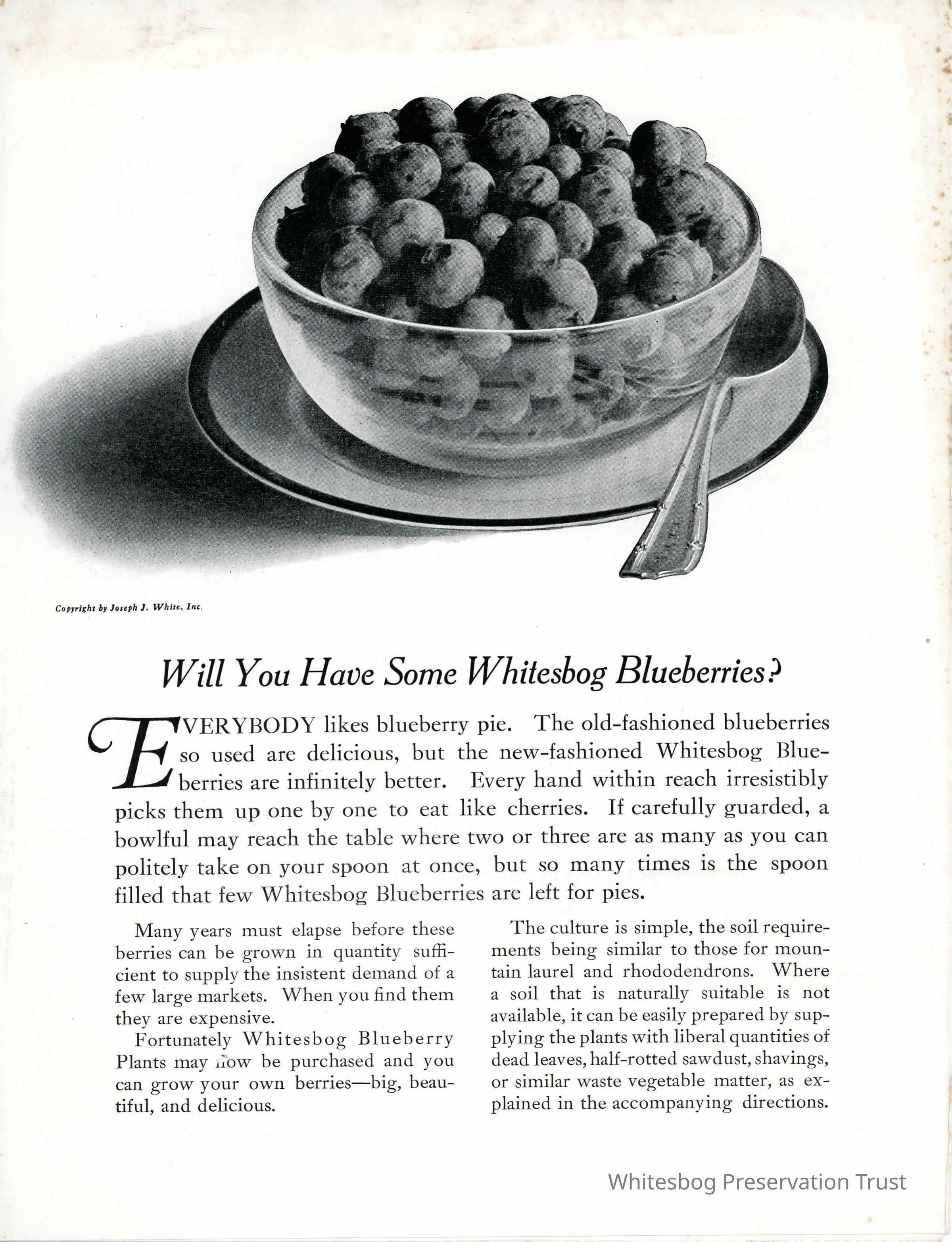 This was produced by J.J. White Inc. and provides purchasing options and growing/care tips for blueberry plants.